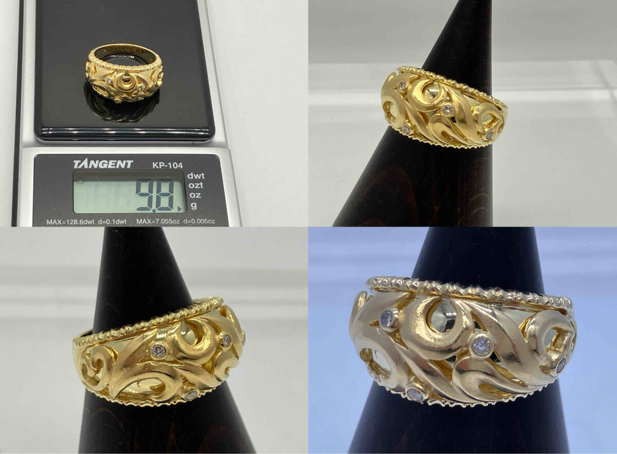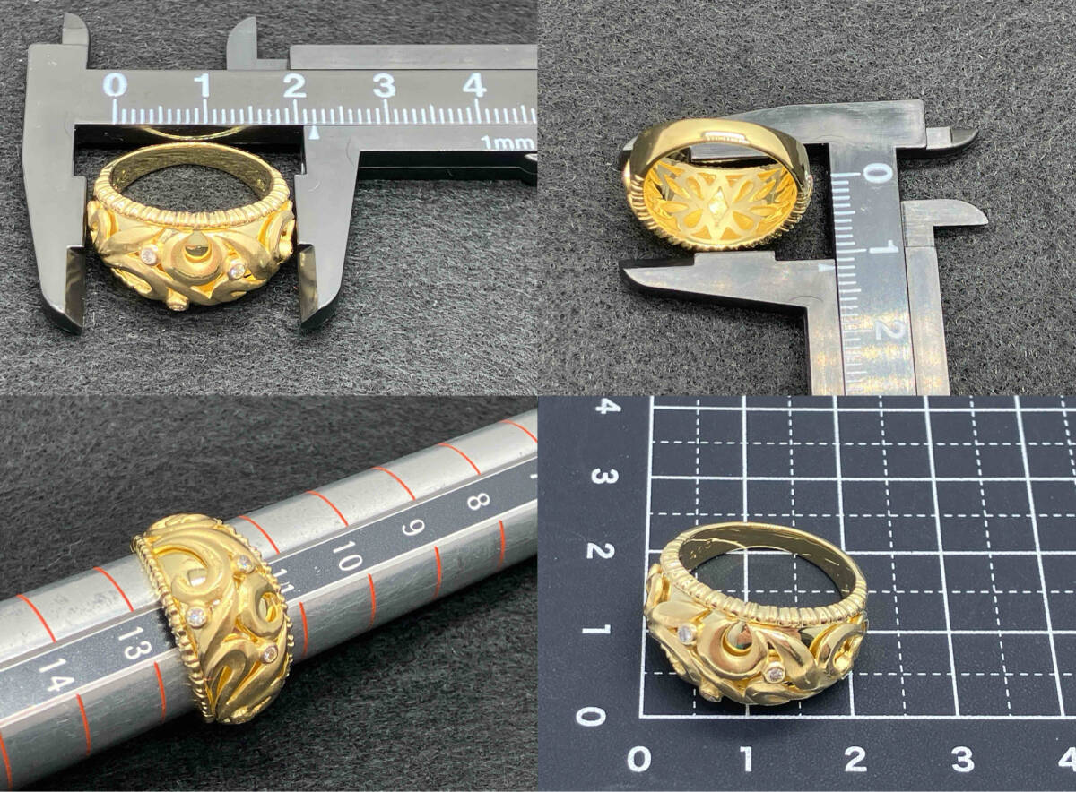 リングサイズ:約 11.5号 リング幅:約 0.4cm 高さ:約 1.2cm 幅:約 2.2cm 総重量:約 9.8g サイズ表記(~cm位)は目安です。ブランドやデザインによって多少前後する場合がございます。予めご了承の上ご注文ください。 ![]() | ||||||