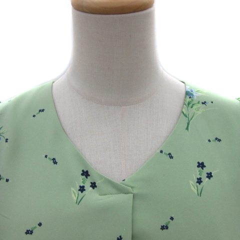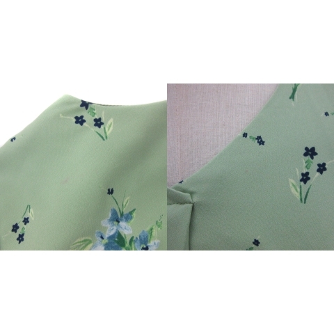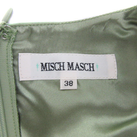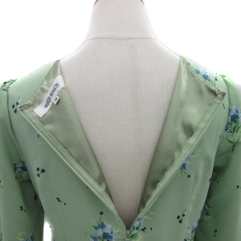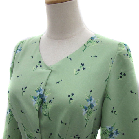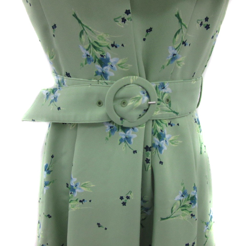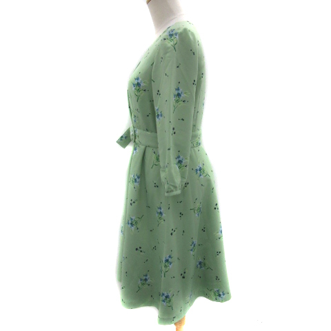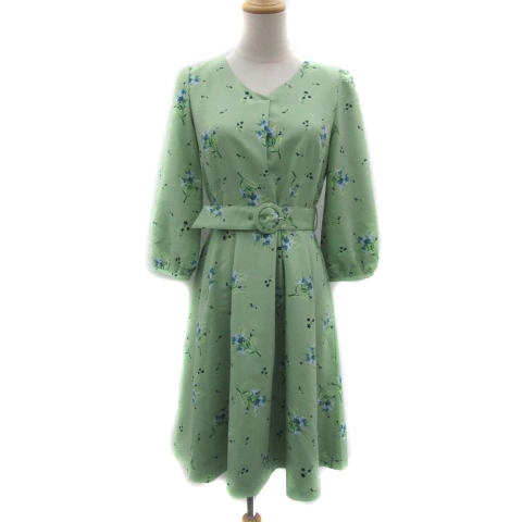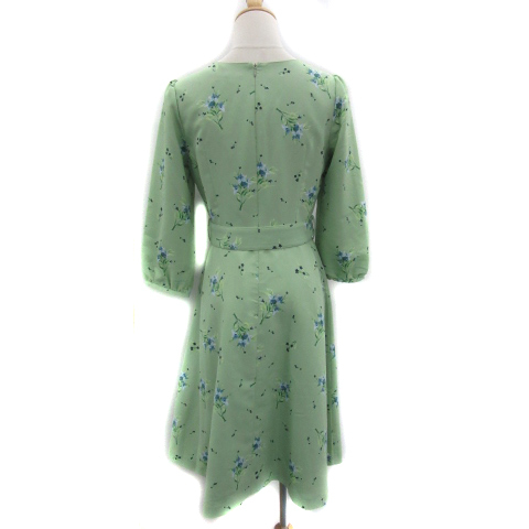 ミッシュマッシュ MISCH MASCH ワンピース ひざ丈 長袖 Vネック 花柄 ウエストベルト付き 38 M マルチカラー 黄緑 レディース