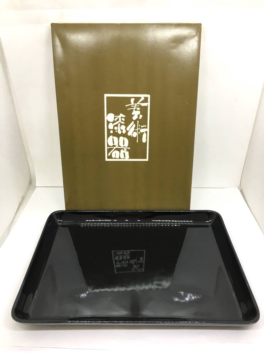 美術漆器 盆 角盆 トレイ 茶道具 黒塗り 切手盆
