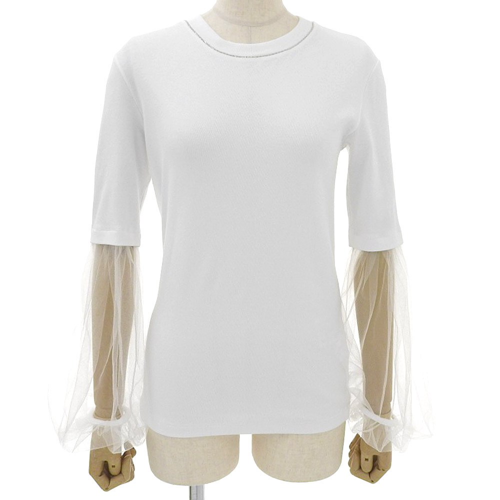 | 超美品 ファビアナフィリッピ 現行白タグ スパンコール飾り モニーレ オーガンジースリーブ クルーネック トップス 36 白 |