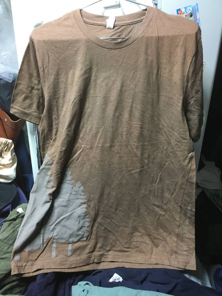 2506USA米アメリカ製ダナーDANNERロゴ・TREE木フォレストFOREST柄ヘザー杢HEATHER霜降TシャツLカットソーBROWN茶ブラウン