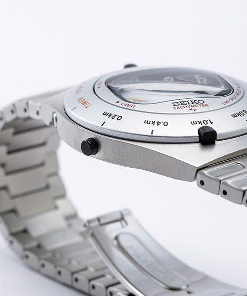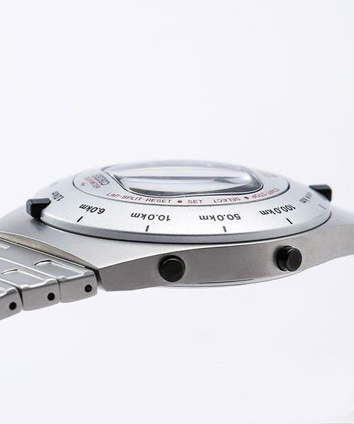 当時と同様に回転ベゼルを回すことで表示が切り替わり、ストップウオッチ等の機能を使用可能。ELライト機能によるバックライトやバンドを無垢化し、利便性が向上しました。