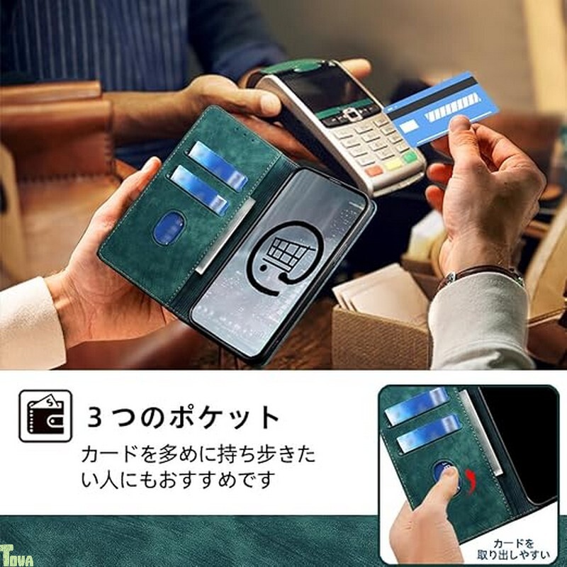 レザーケースにはお金、銀行カード、トランジットカード、極小カードを収納できるカードスロット2つとサイドポケット1つが付いています。