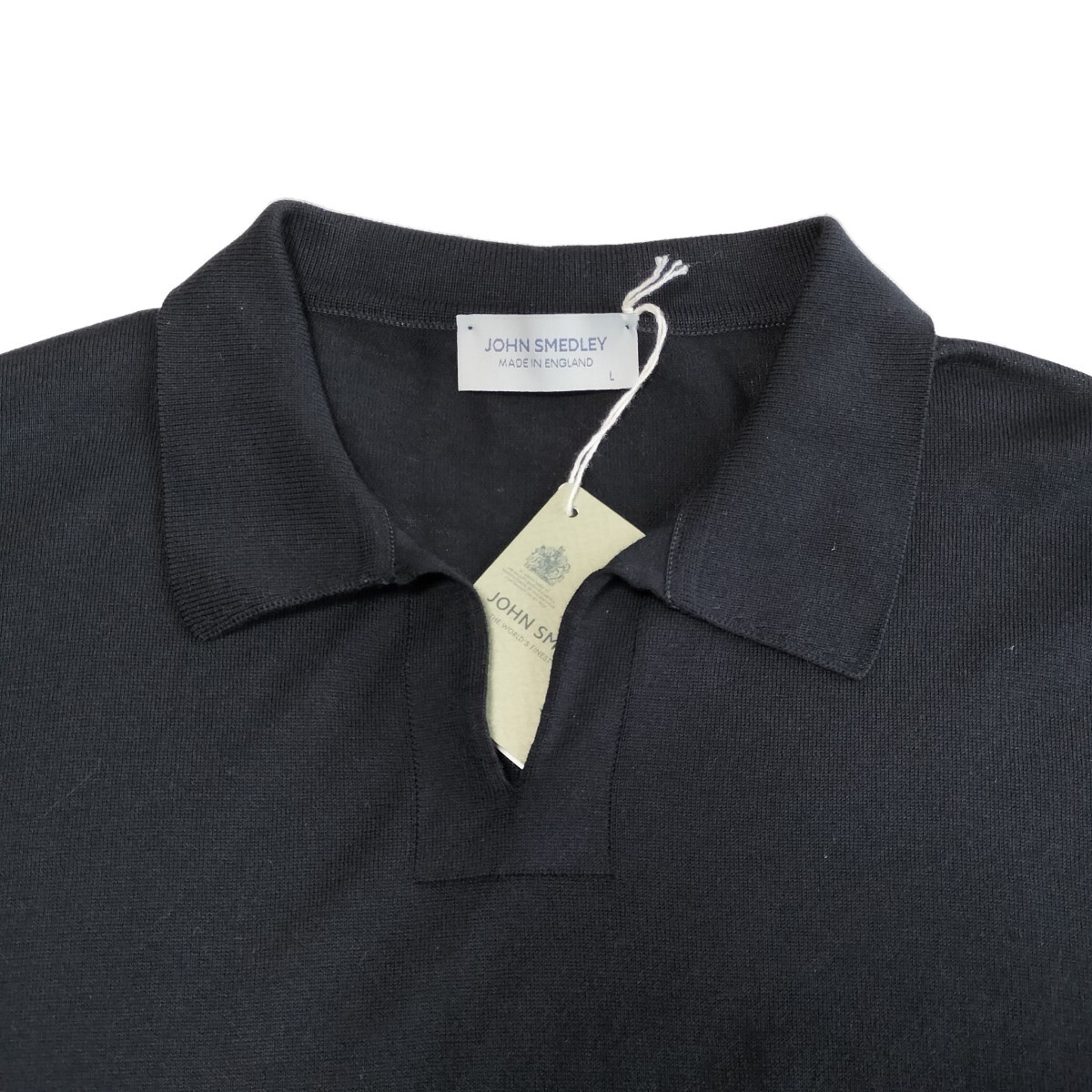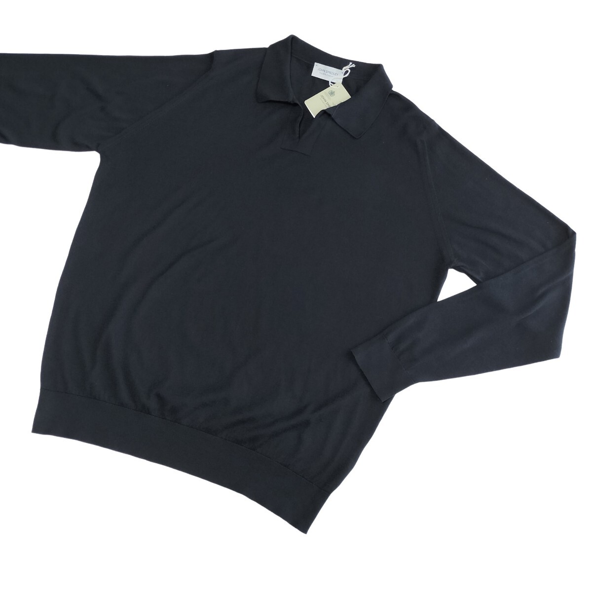 メンズ L ジョンスメドレー 最高級コットン 長袖スキッパーポロシャツ AYERS ブラック JOHN SMEDLEY イギリス製★