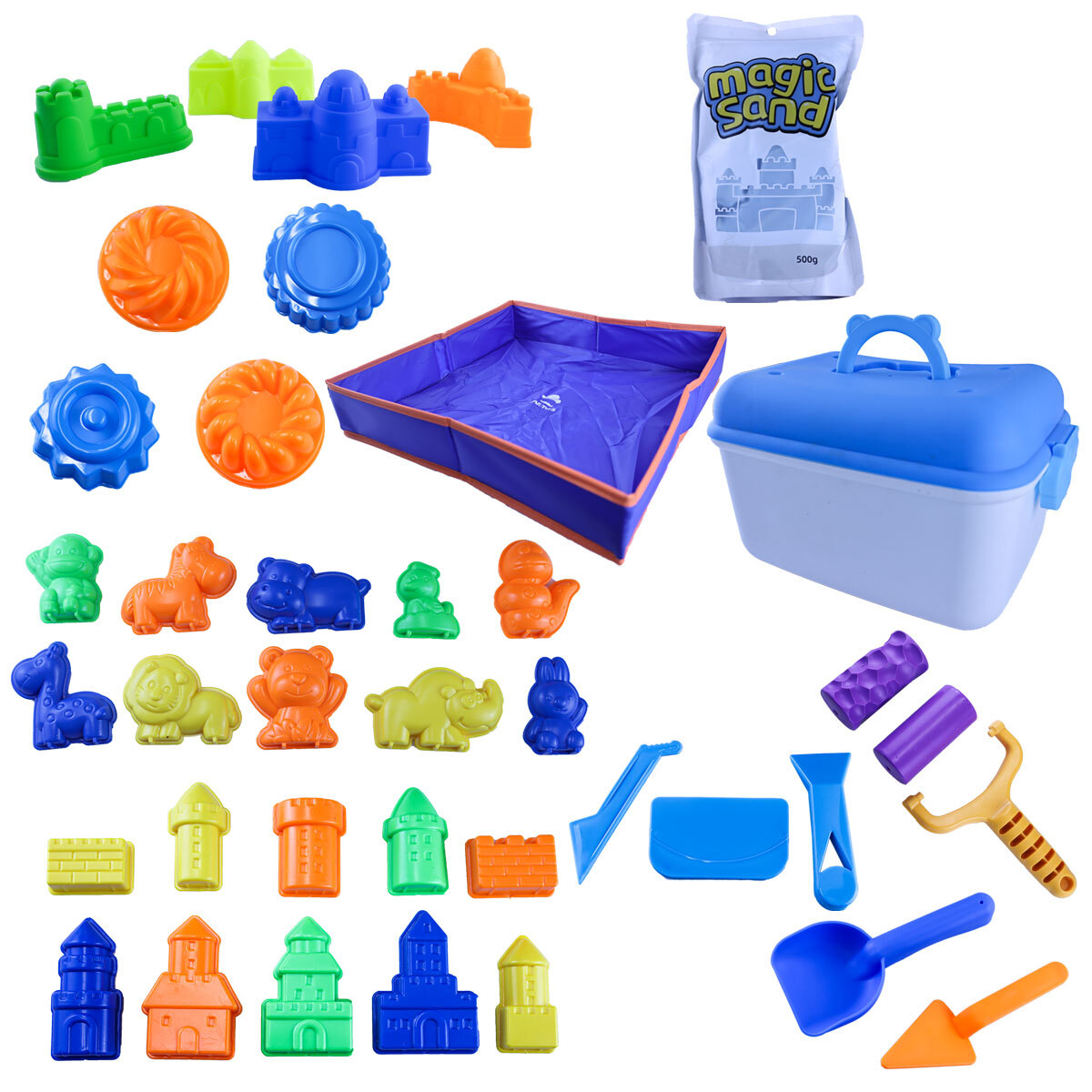 砂遊び 魔法の砂 マジックサンド 魔法サンド 砂 室内砂遊び 知育玩具 粘土のような触感 500g 青色 ブルー 型セット