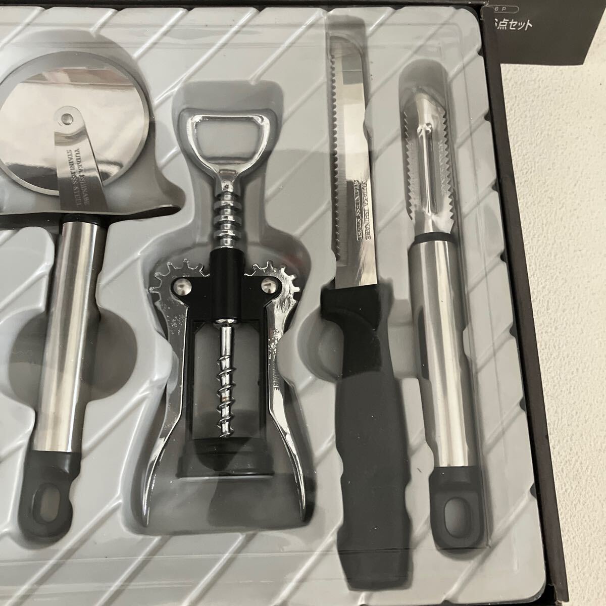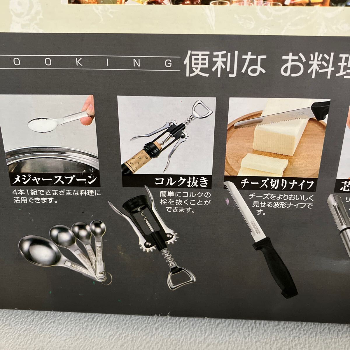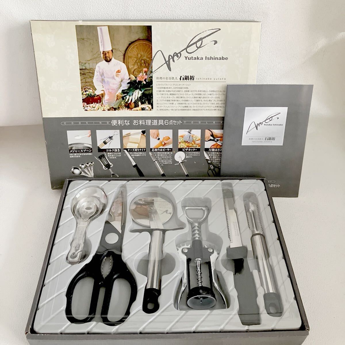 e37-80 未使用 石橋裕 便利なお料理道具6点セット メジャースプーン コルク抜き チーズ切りナイフ ピーラー ピザカッター はさみ 料理