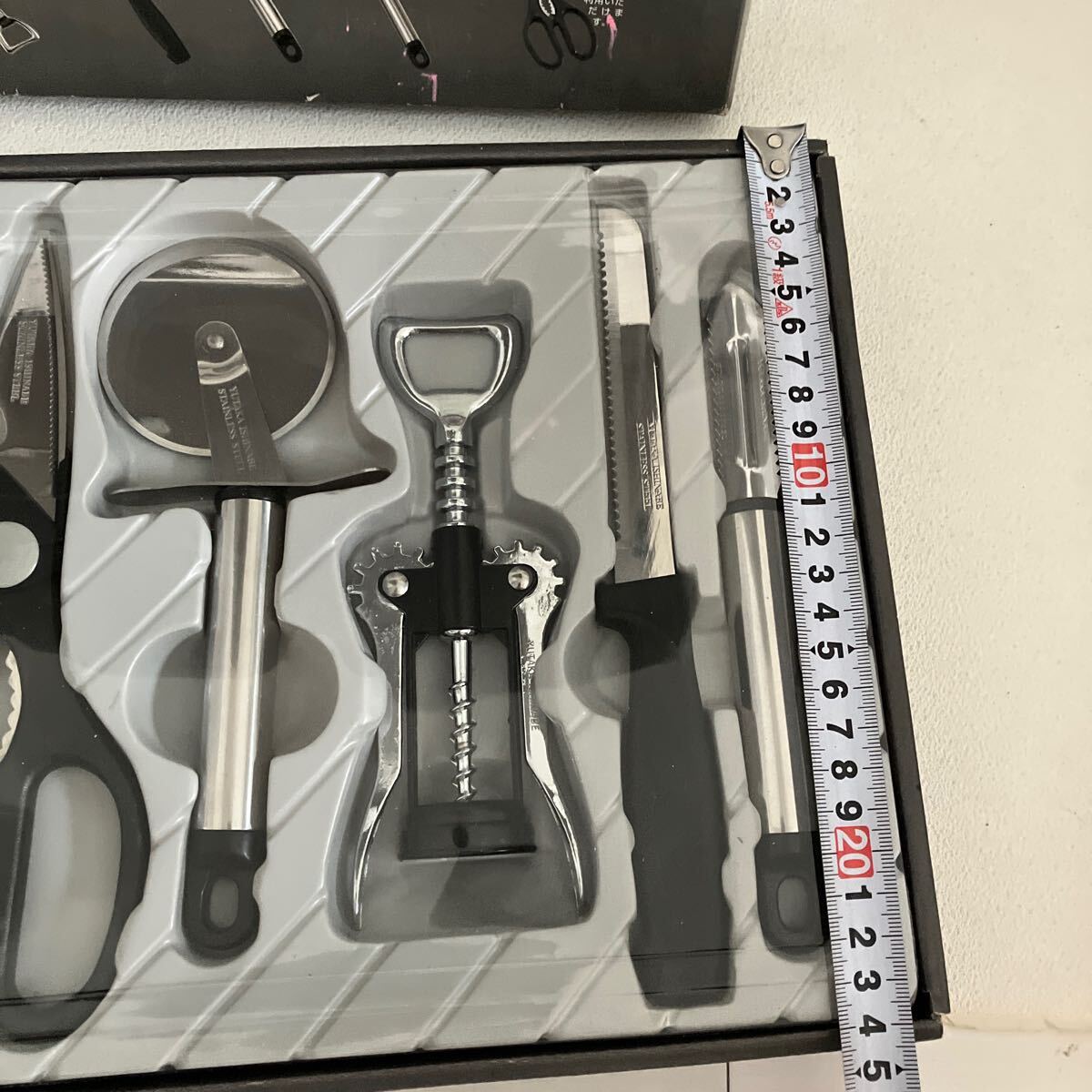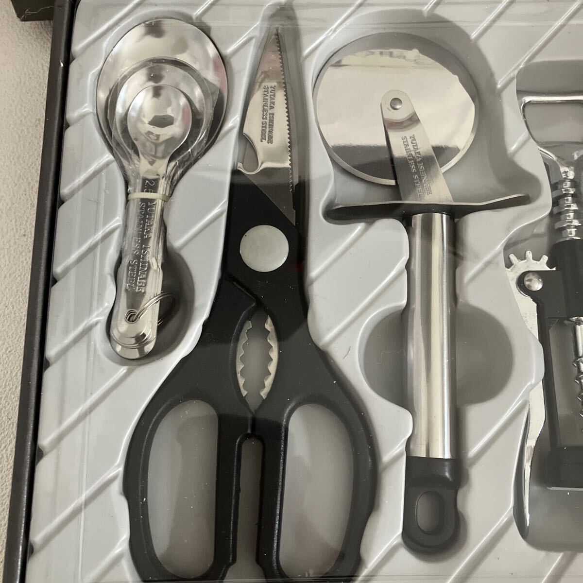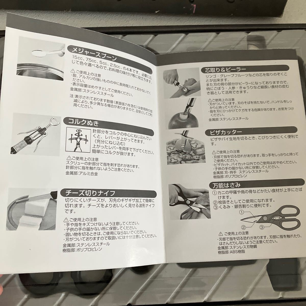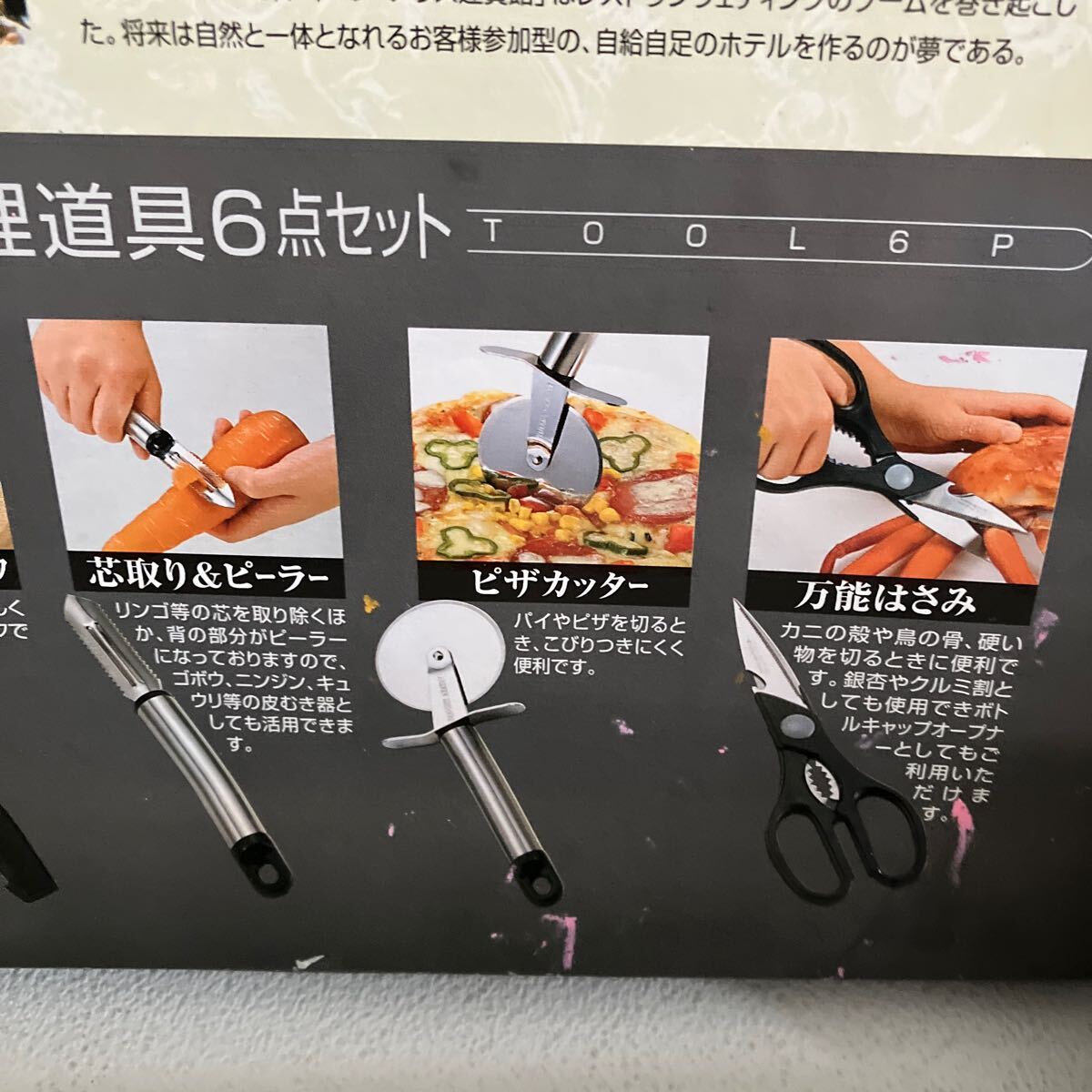 e37-80 未使用 石橋裕 便利なお料理道具6点セット メジャースプーン コルク抜き チーズ切りナイフ ピーラー ピザカッター はさみ 料理