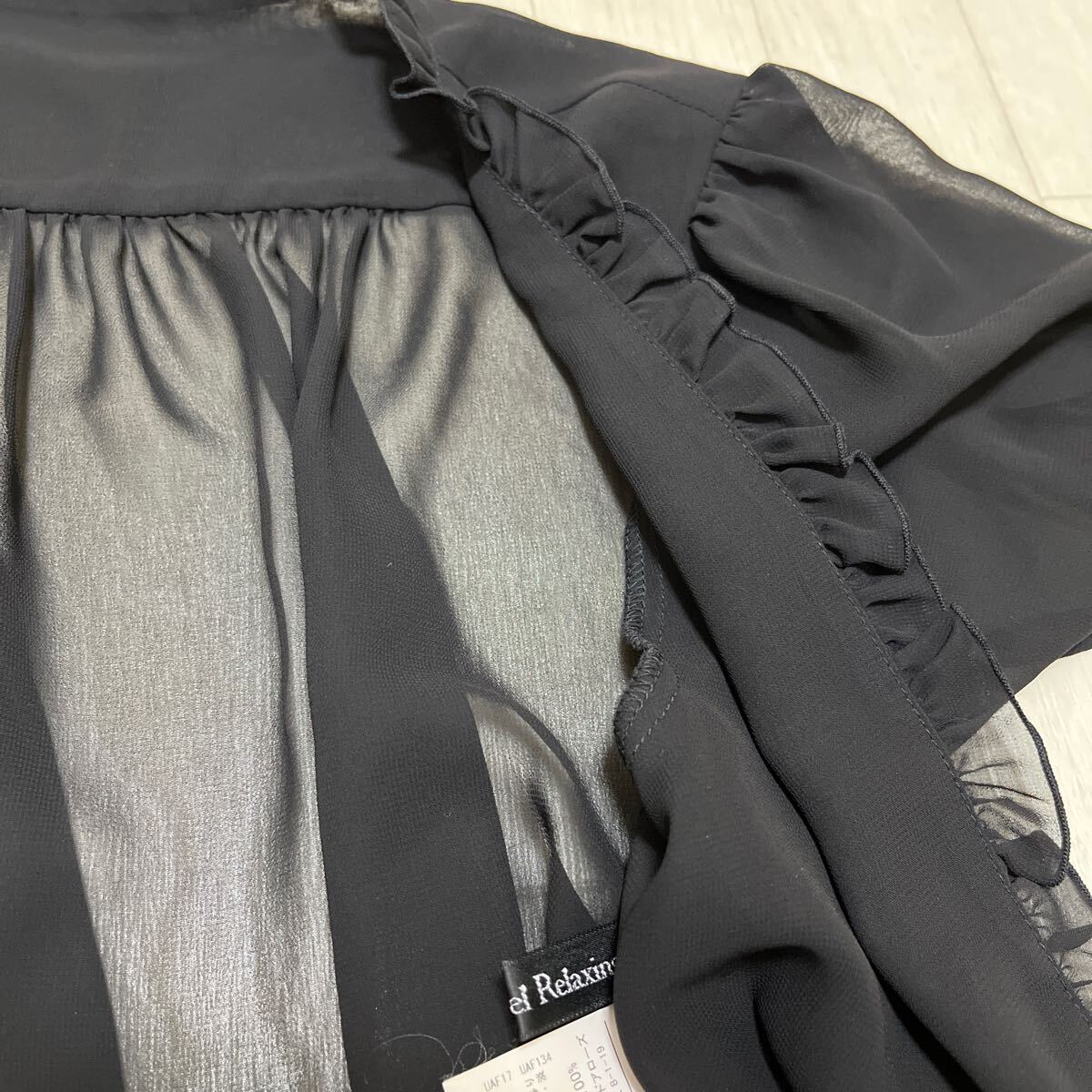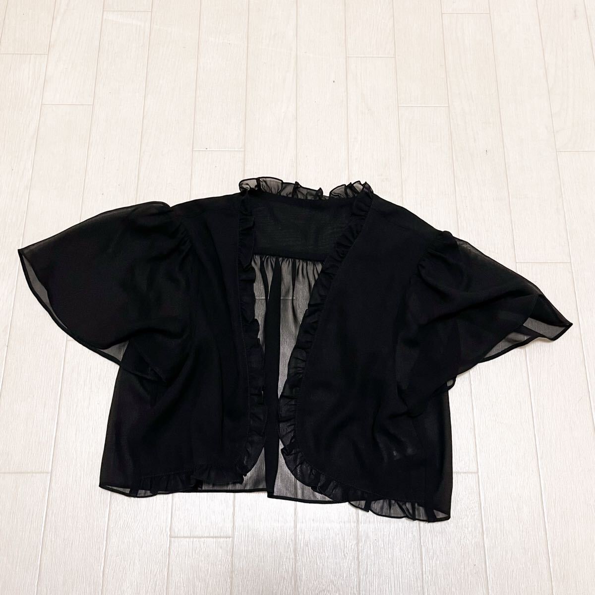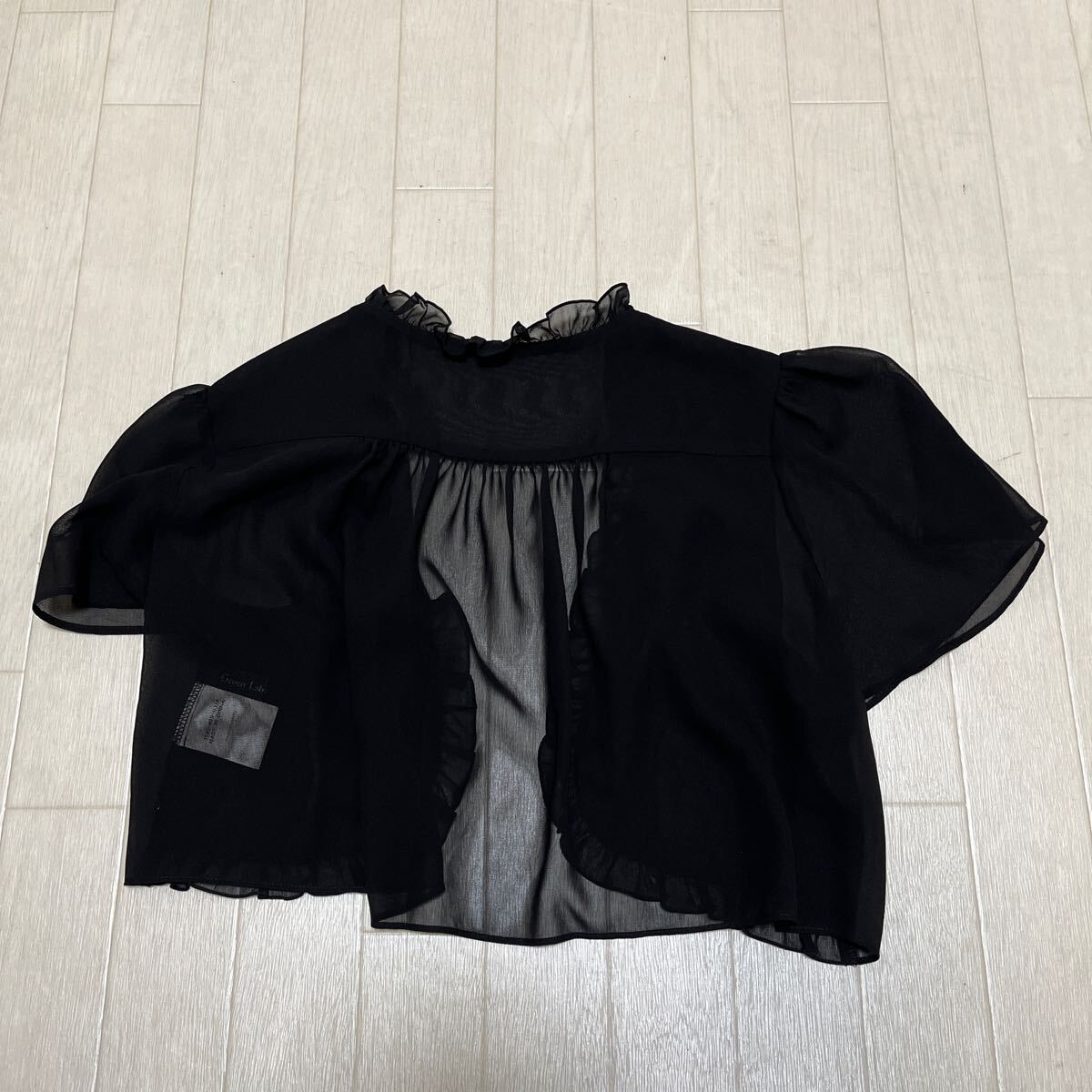 和762★ GREEN LABEL RELAXING グリーンレーベルリラクシング 半袖 シアー ショートジャケット ボレロ フリル ブラック レディース