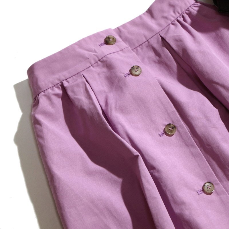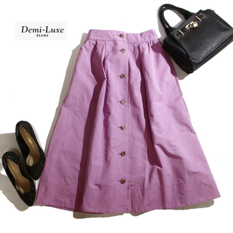 美品 Demi-Luxe BEAMS デミルクス ビームス きれい色 前ボタン ロングスカート ウエスト片側ゴム 36 S ピンク パープル 紫 スカート フレア