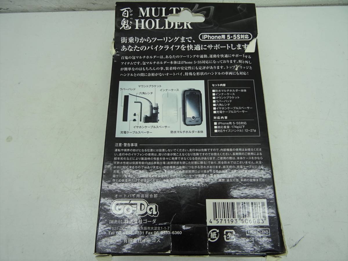 百鬼 防水 マルチホルダー スマートフォンホルダー バイク用 ハンドルマウント HOLD-B8 iPhone5S・5専用