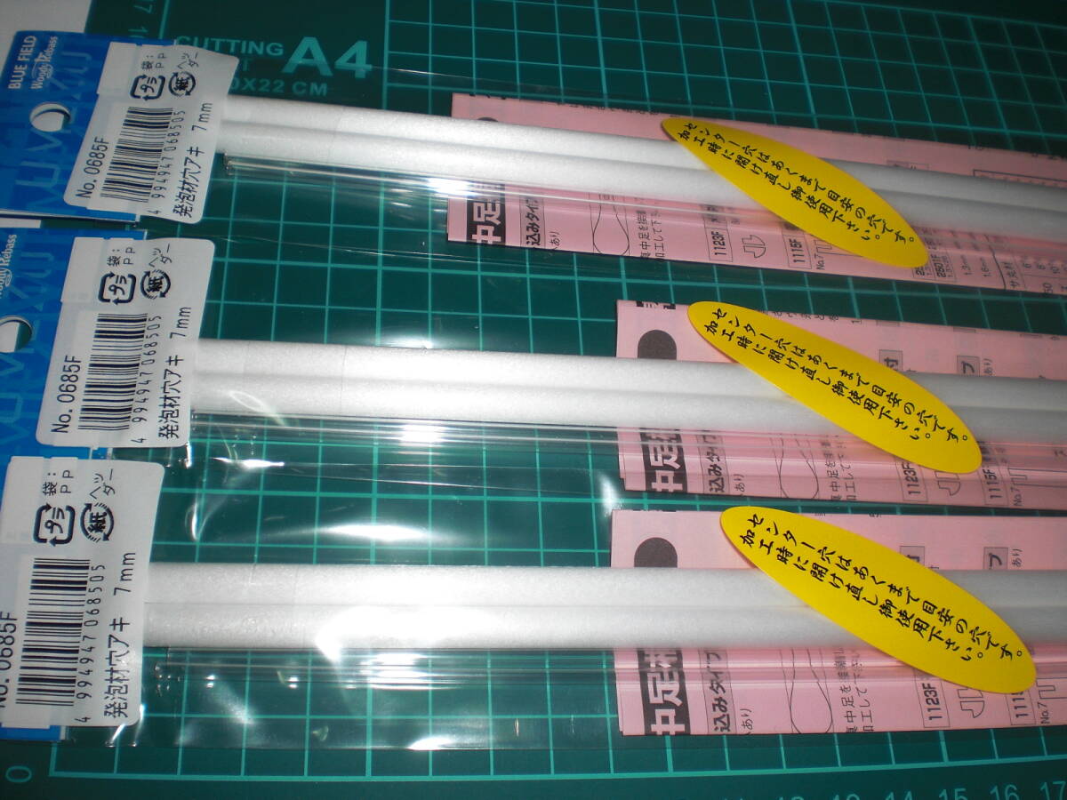 ■ BLUE.FIELD 発砲材穴アキ+パイプ50cm 7mm 2本+2本入=3枚 棒ウキ製作等に