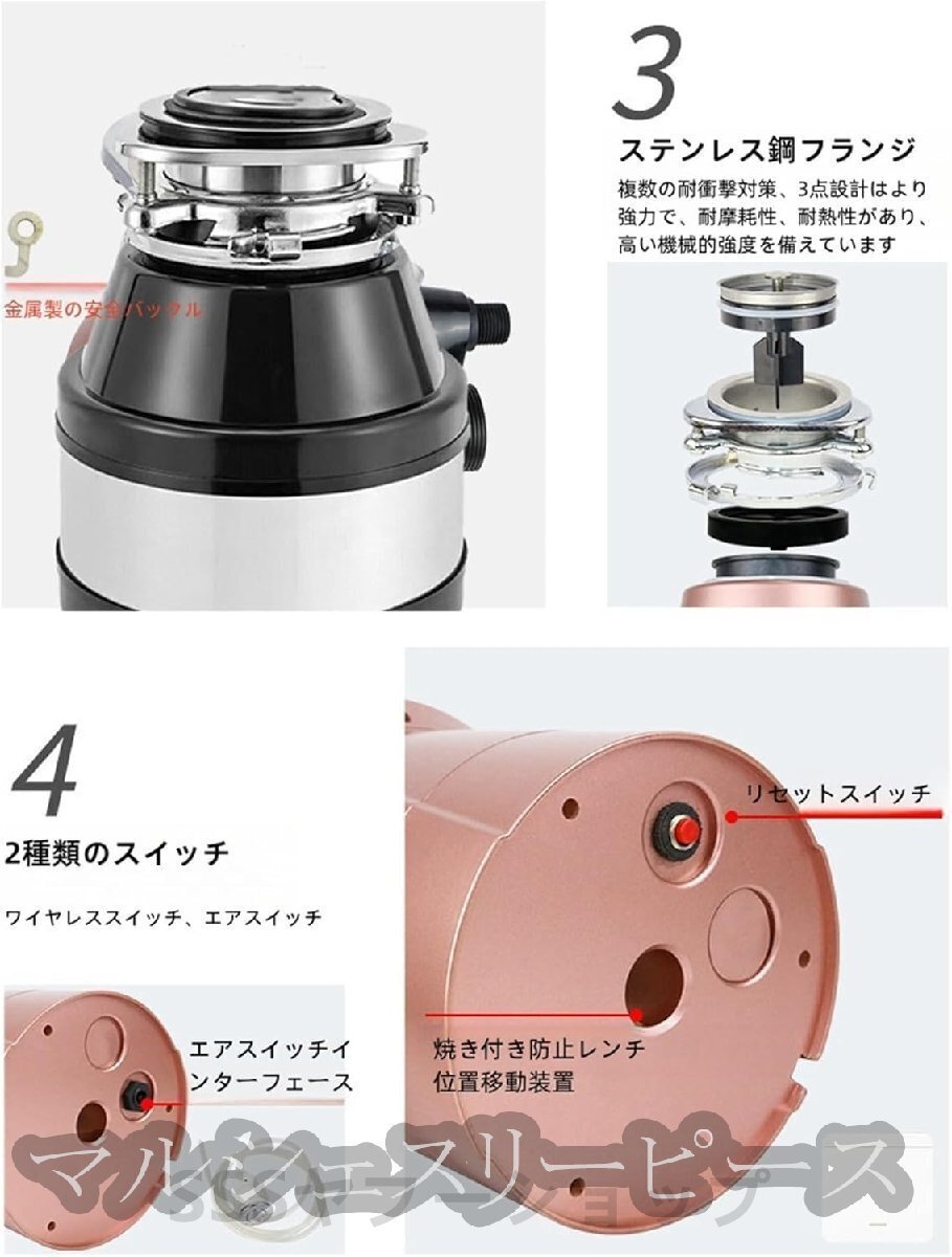 【粉砕機で手軽に生ゴミ処理】:より多くの食品廃棄物を簡単かつ徹底的に粉砕し、下水システムをよりスムーズにします。 エビの殻や骨、腐った果物や野菜、食べ残しなどもこの製品で簡単に処理できます。