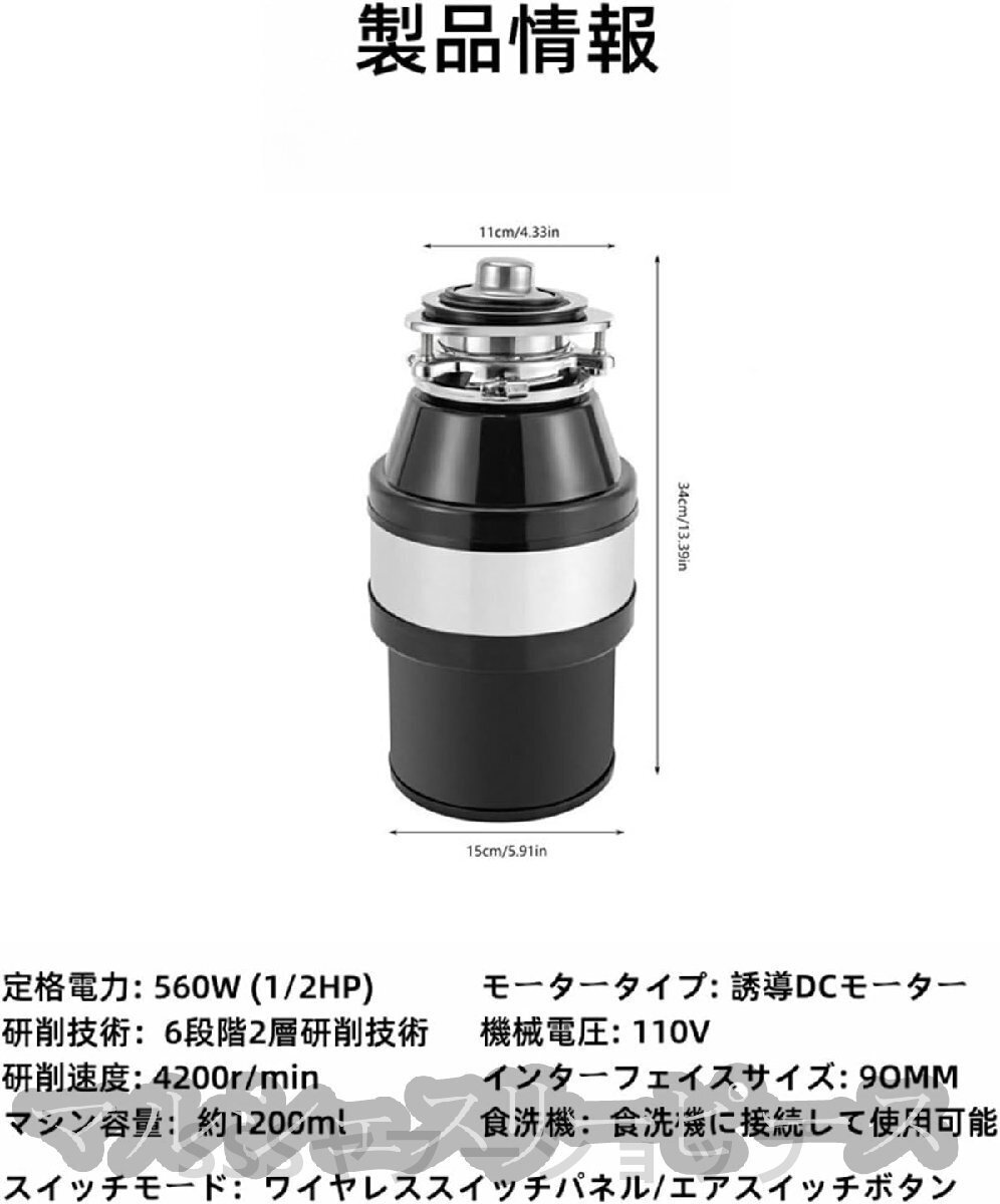 ★【家庭用で取り付け簡単】:シンク下に設置して使えるので、手が汚れる心配なし! もうゴミ捨てについて心配する必要はなくなり、キッチンの掃除も簡単になります。