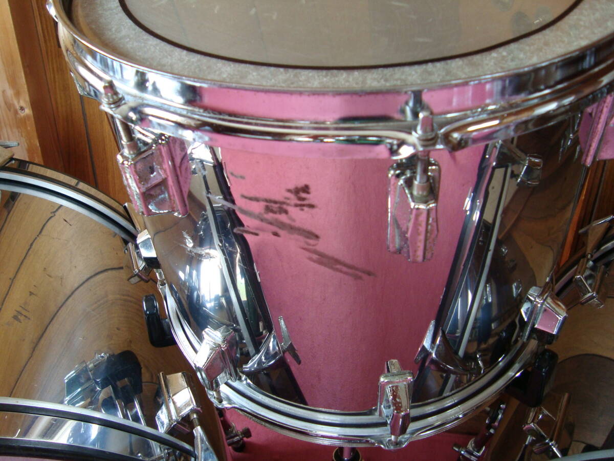 記載忘れておりました。バスドラムのフープのカバリングのりしろ部分に浮きがございます。
