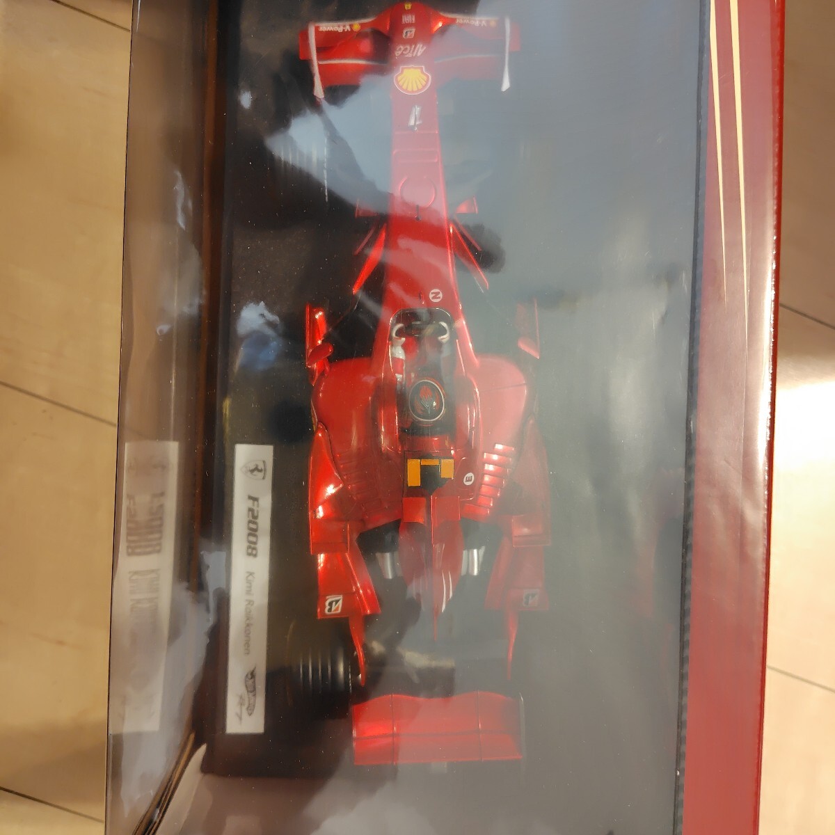 2007年に大逆転でワールドチャンピオンに輝いたキミ・ライコネンが2008年にドライブしたマシンのホットホィール1/18スケールモデルです。未開封未使用美品でモデル本体、箱に傷や擦れはありません。
