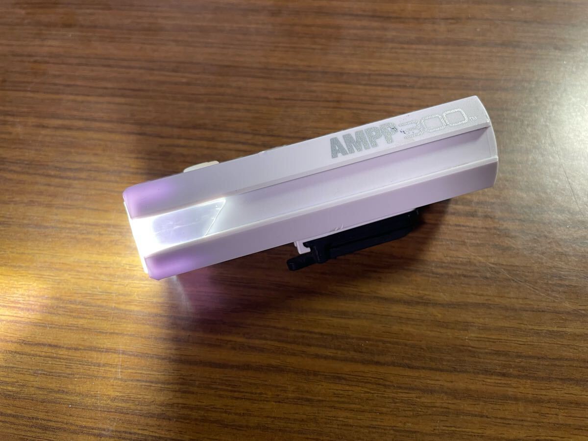 Cateye キャットアイの充電式ライト AMPP300 ホワイトカラーモデルです。