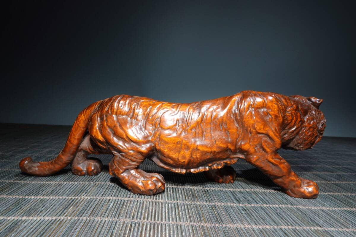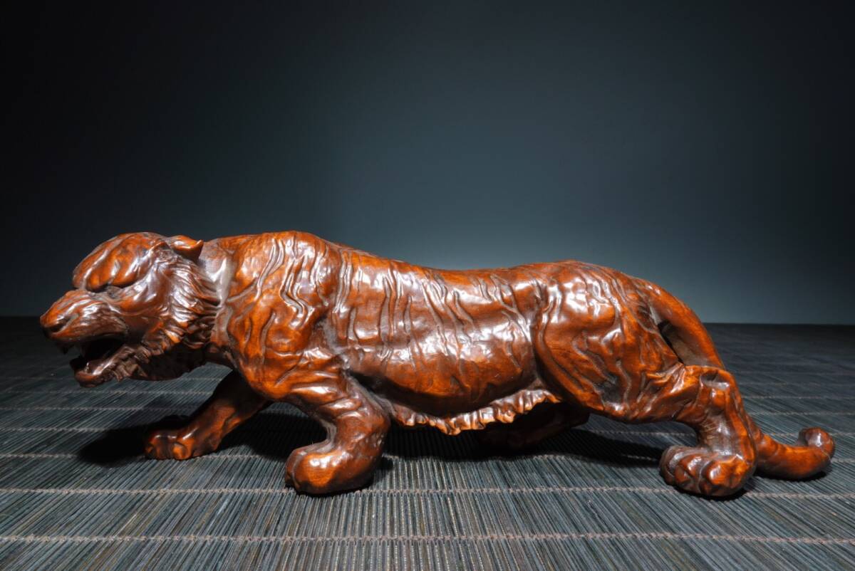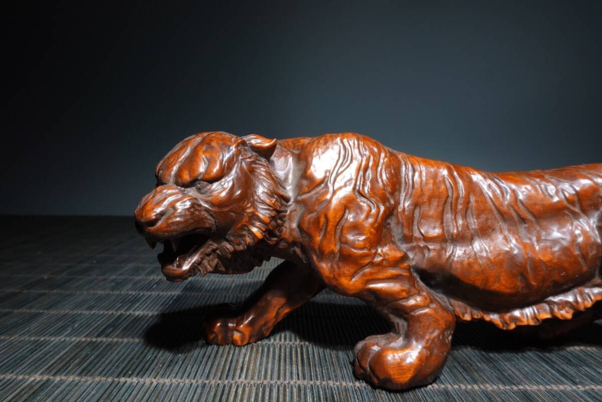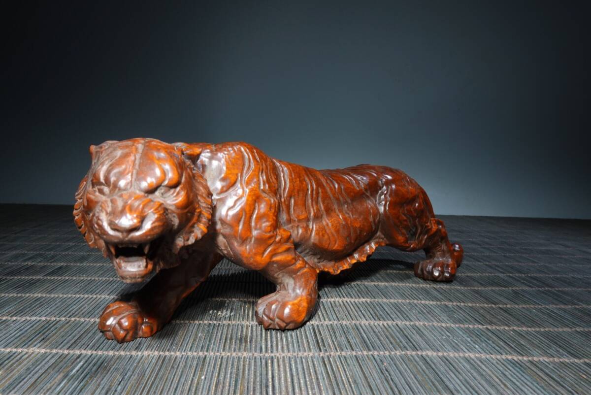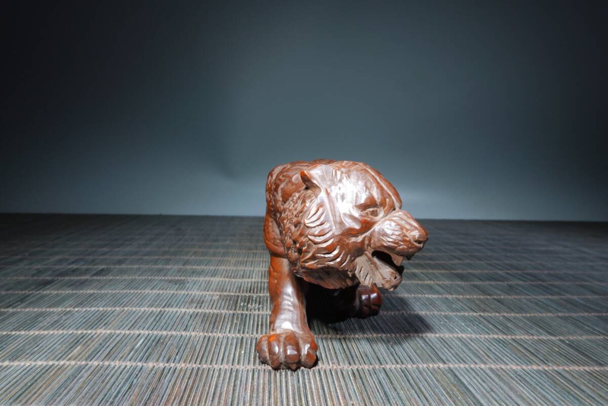 【超珍館蔵】黄楊木製 細密彫 虎虎生威 置物 賞物 古賞物 古董品 古美術品 時代物 旧家蔵出 稀少珍蔵品
