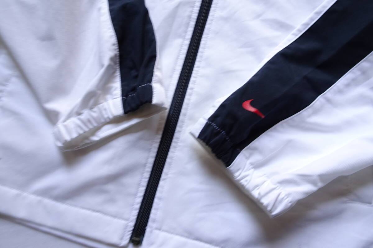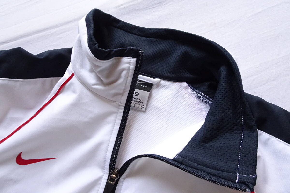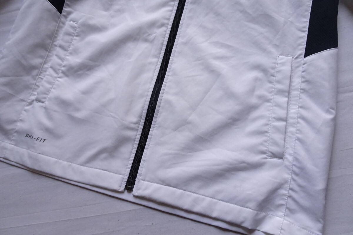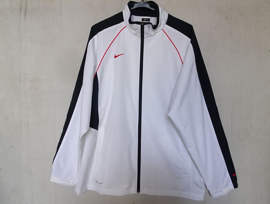 NIKE DRI-FIT/ナイキ/ジャンパー/アウター/前ジップアップ/紺切替配色/身頃脇メッシュ切替/スポーツ/白/ホワイト/XLサイズ(6/19R7)