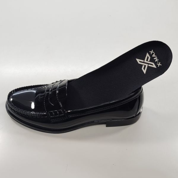 ツヤ感のある上品なエナメル調仕上げで足元をエレガントに演出。にわか雨に備えて、おすすめの晴雨兼用ローファーです。