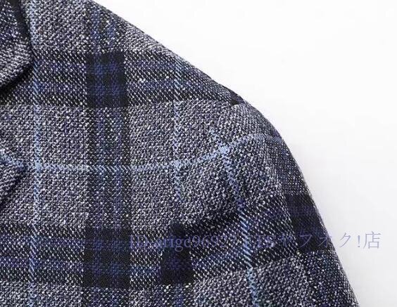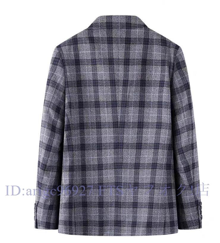 新品★人気秋冬 ブルーXグレー/ メンズ ブレザー アウター 春秋 ジャケット 高級感 おしゃれ 日常 格子柄 テーラードジャケット
