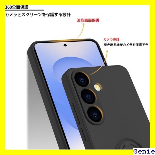 Galaxy S25 用ケース TPU 耐衝撃 リング シリコンケース 薄型 ソフト 全面保護カバー 指紋防止 リング付き スタンド機能 車載ホルダー対応 360°回転 レンズ保護 ストラップホール付き スリム 軽量 黄変防止 防塵 ギャラクシー S25/SC-51F/SCG31 用カバー 黒 KC6-350 33