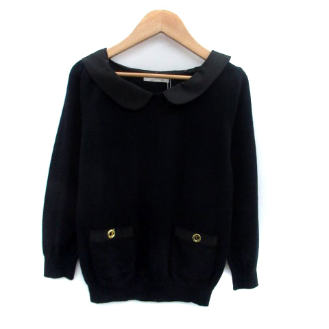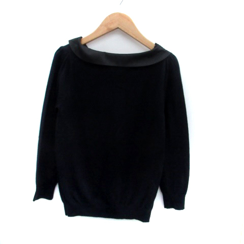 未使用品 エニィスィス エニシス anySiS ニット カットソー 2way ラウンドカラー Vネック 七分袖 2 M 紺 ネイビー 黒 レディース