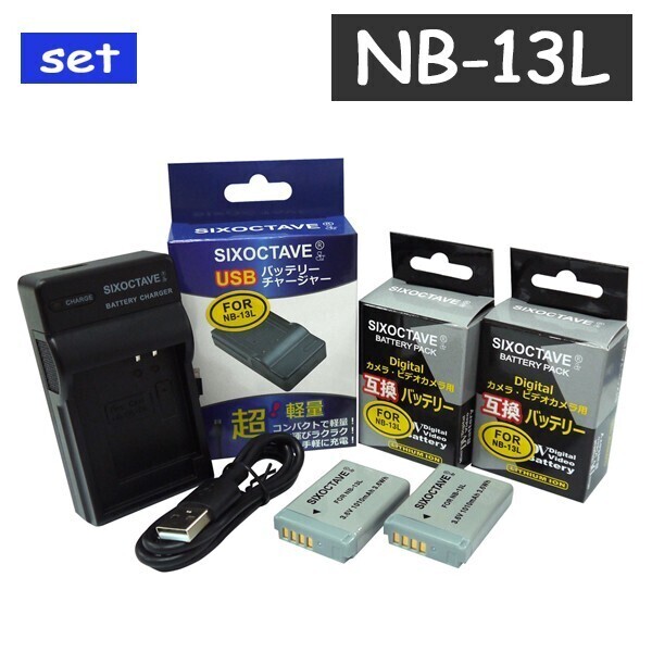NB-13L キャノン 互換バッテリ-2個と互換USB充電器の3点 set