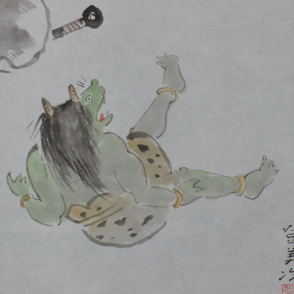 【宙】真作保証 川島登美次「鐘馗」紙本 掛軸 落款有 共箱付 鬼を退ける鐘馗像 豪快な筆致と表情豊かな武人画 日本美術院院友 [D]5D30.h.C