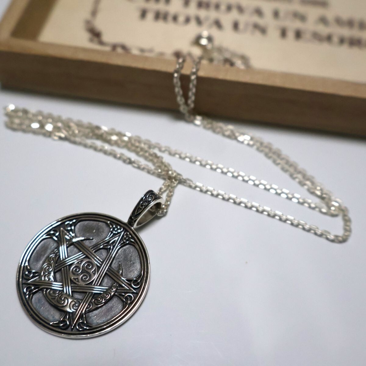 魔法の輝きを持ち、神秘と力強さを宿す特別なアクセサリーです。魔法陣は古くから宇宙のエネルギーを集め、保護やパワーをもたらすと信じられています。このトップはその神秘的な意味を胸元に灯し、高品質なシルバーの輝きが心に魔法の軌跡を描きます。新しい日々に神秘的な力強さをもたらすエレガントなアクセサリーです。