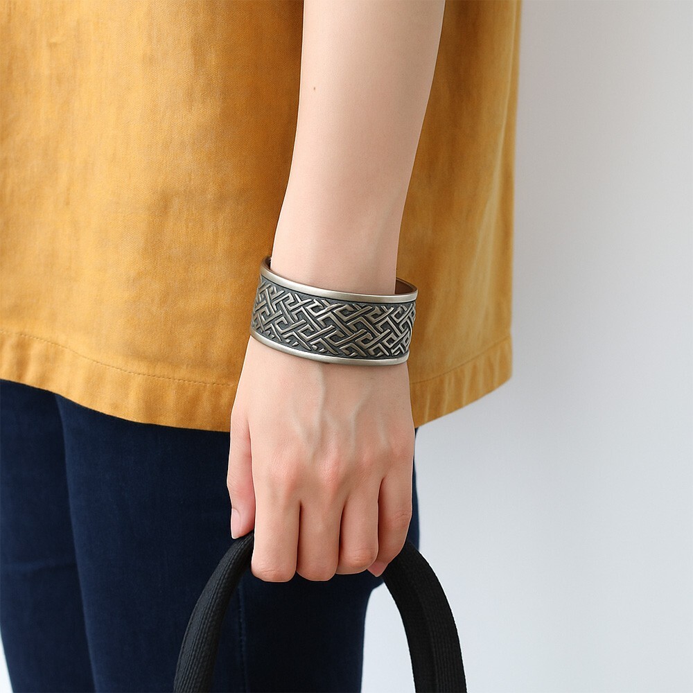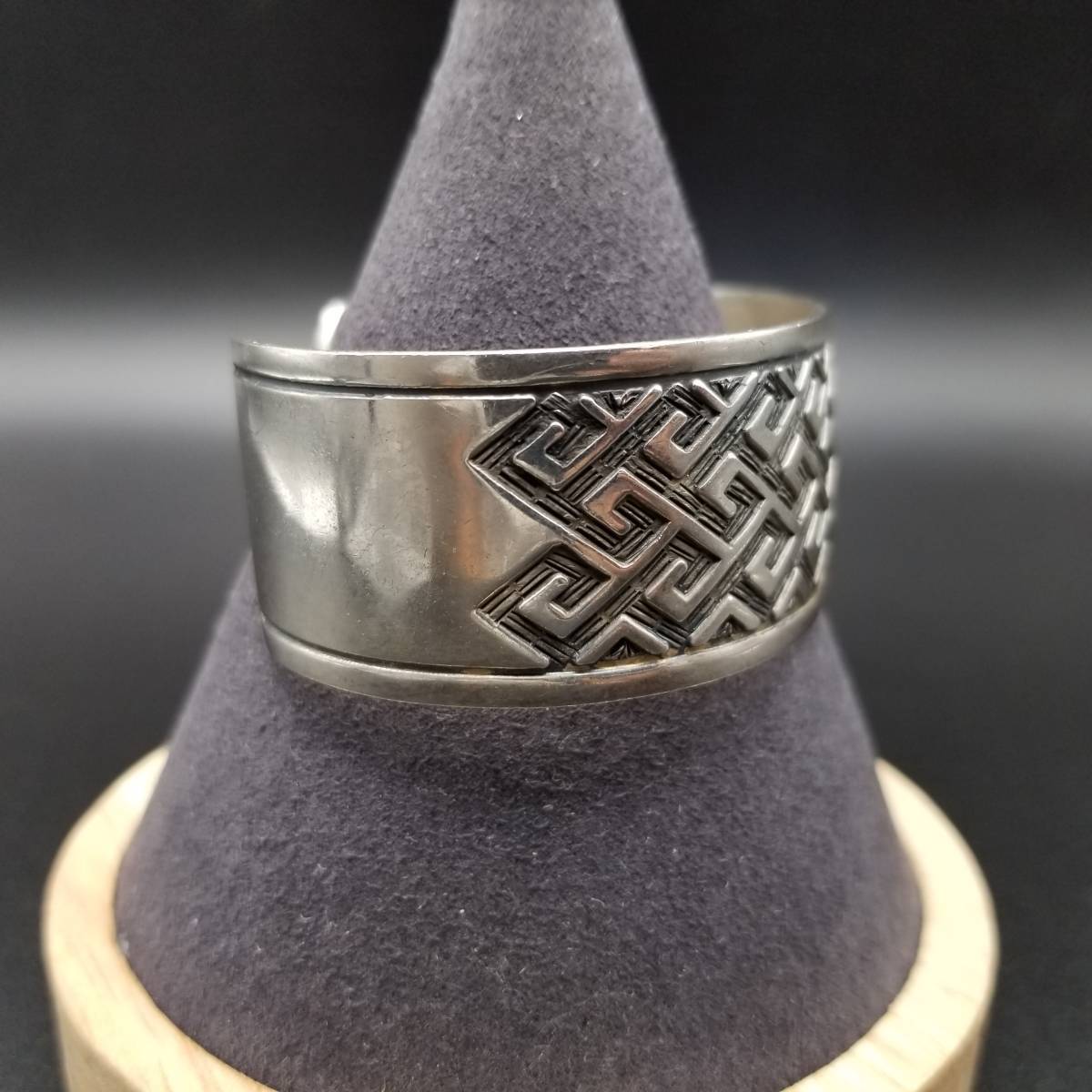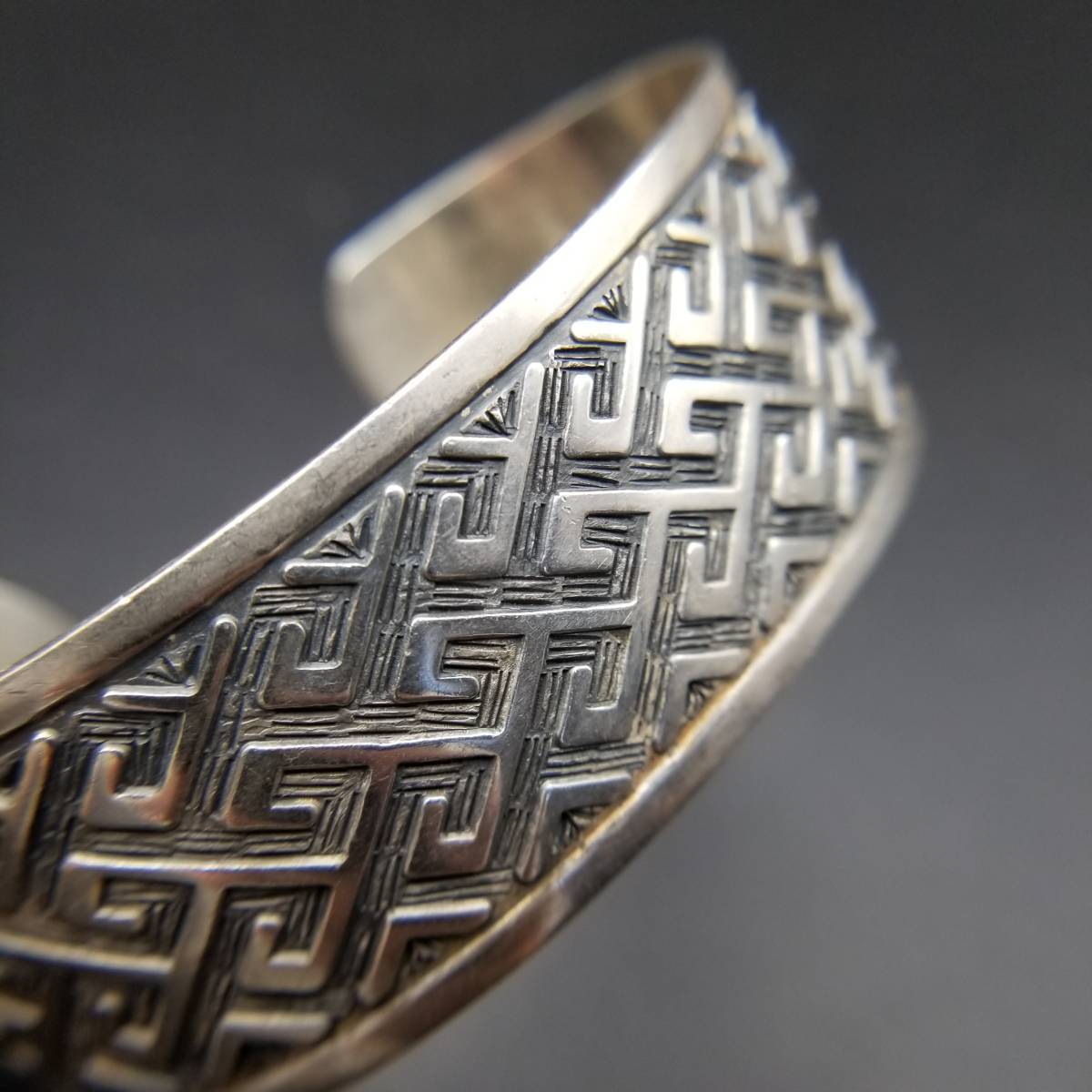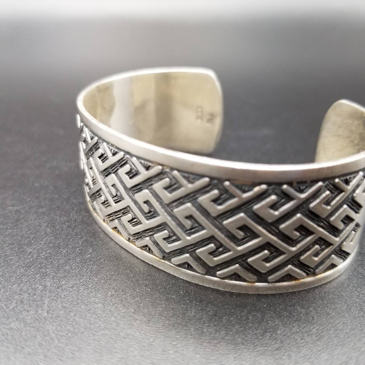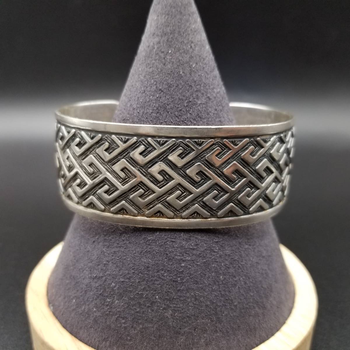 メキシコ 925 シルバー 雷紋 四角 渦巻 ヴィンテージ カフブレスレット 銀細工 装飾 バングル 39g TAXCO タスコ Y8-D