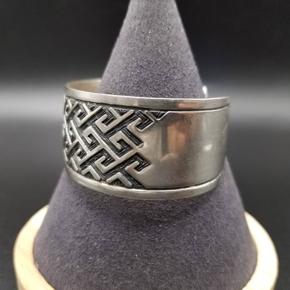 メキシコ 925 シルバー 雷紋 四角 渦巻 ヴィンテージ カフブレスレット 銀細工 バングル 39g TAXCO タスコ Y8-D
