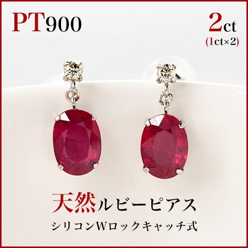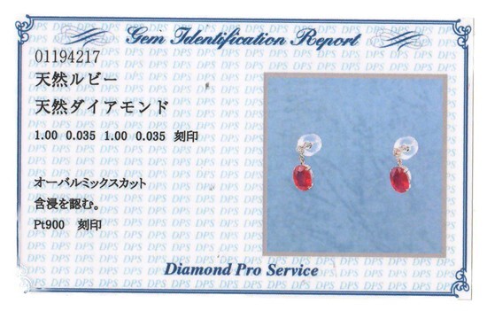 石数 | ルビー2カラット(1カラットx2石) ダイヤモンド0.070カラット(0.035カラット×2石) |