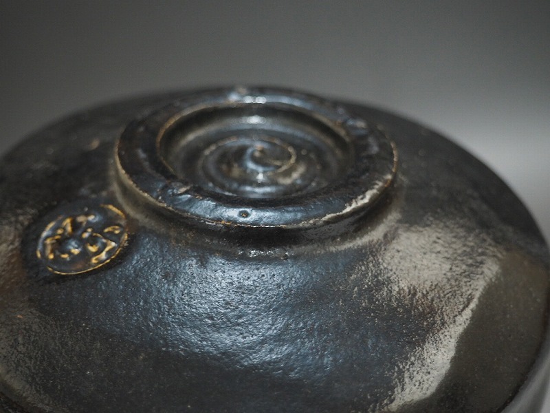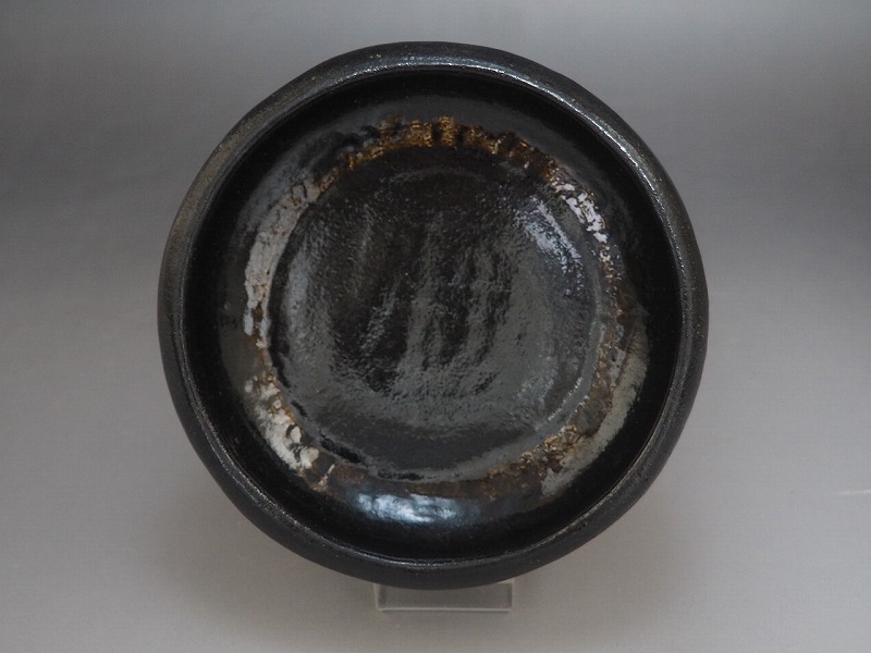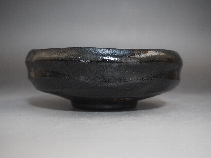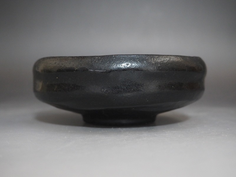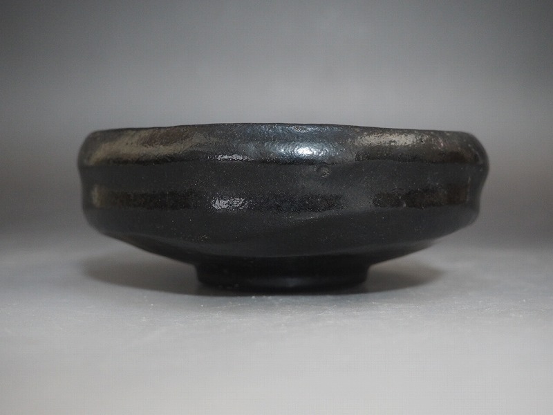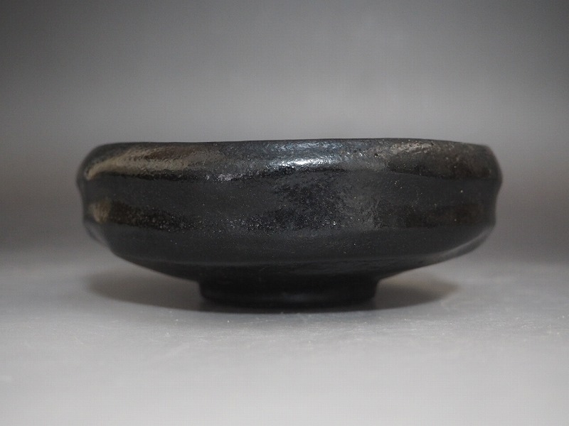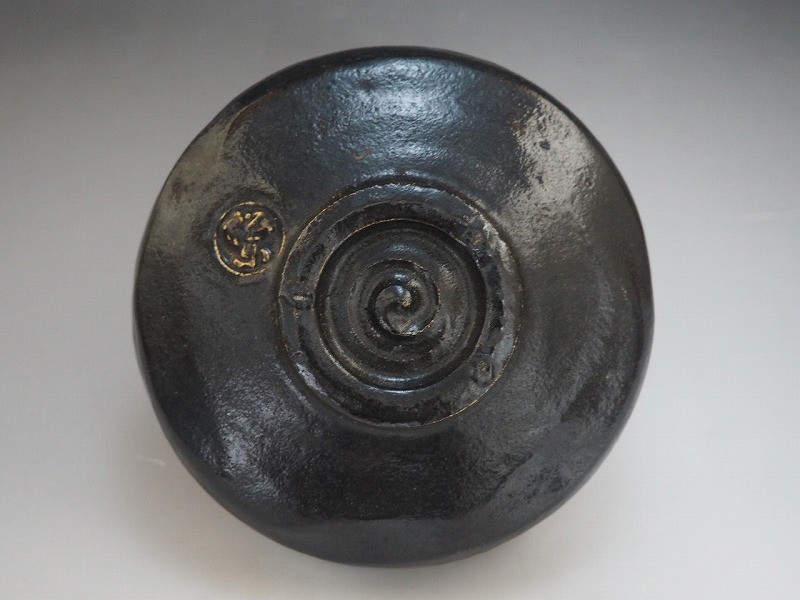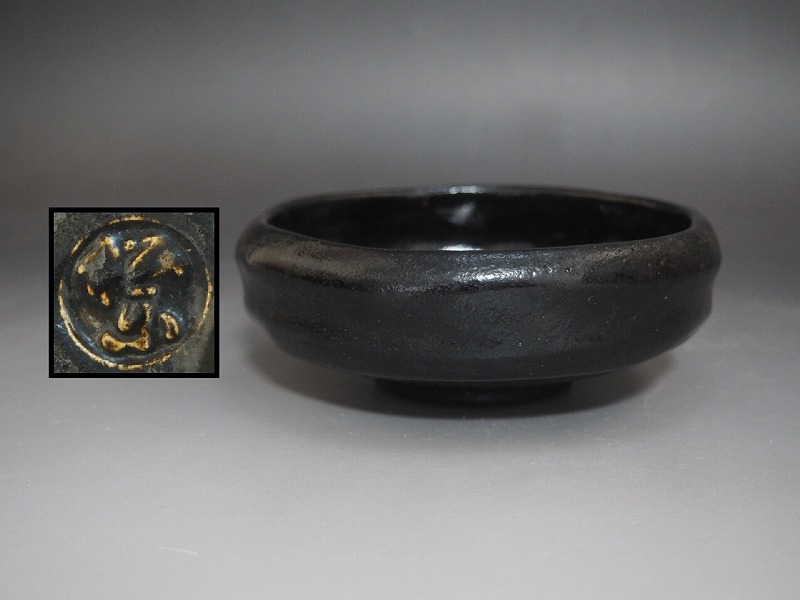 A4118 佐々木松楽 作 黒楽 馬盥茶碗 ☆ 茶道具 茶器 抹茶器 茶懐石 茶事 茶碗 抹茶碗 楽茶碗 楽焼 陶器 作家物 在銘 陶印 美品 良品 無傷 | ||