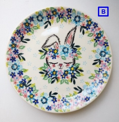 ポーランド ボレスワヴィエツ陶器 お花畑のウサギ 青系 ART柄 17cm プレート/皿 Bです。