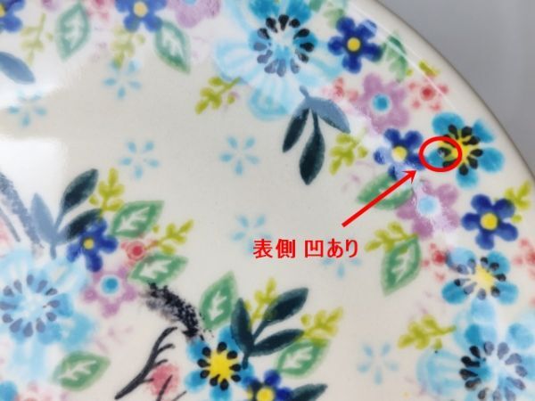 x787 ポーランド陶器 17cmプレート/皿 B お花畑のウサギ 青系 ART ポーリッシュポタリー 食器