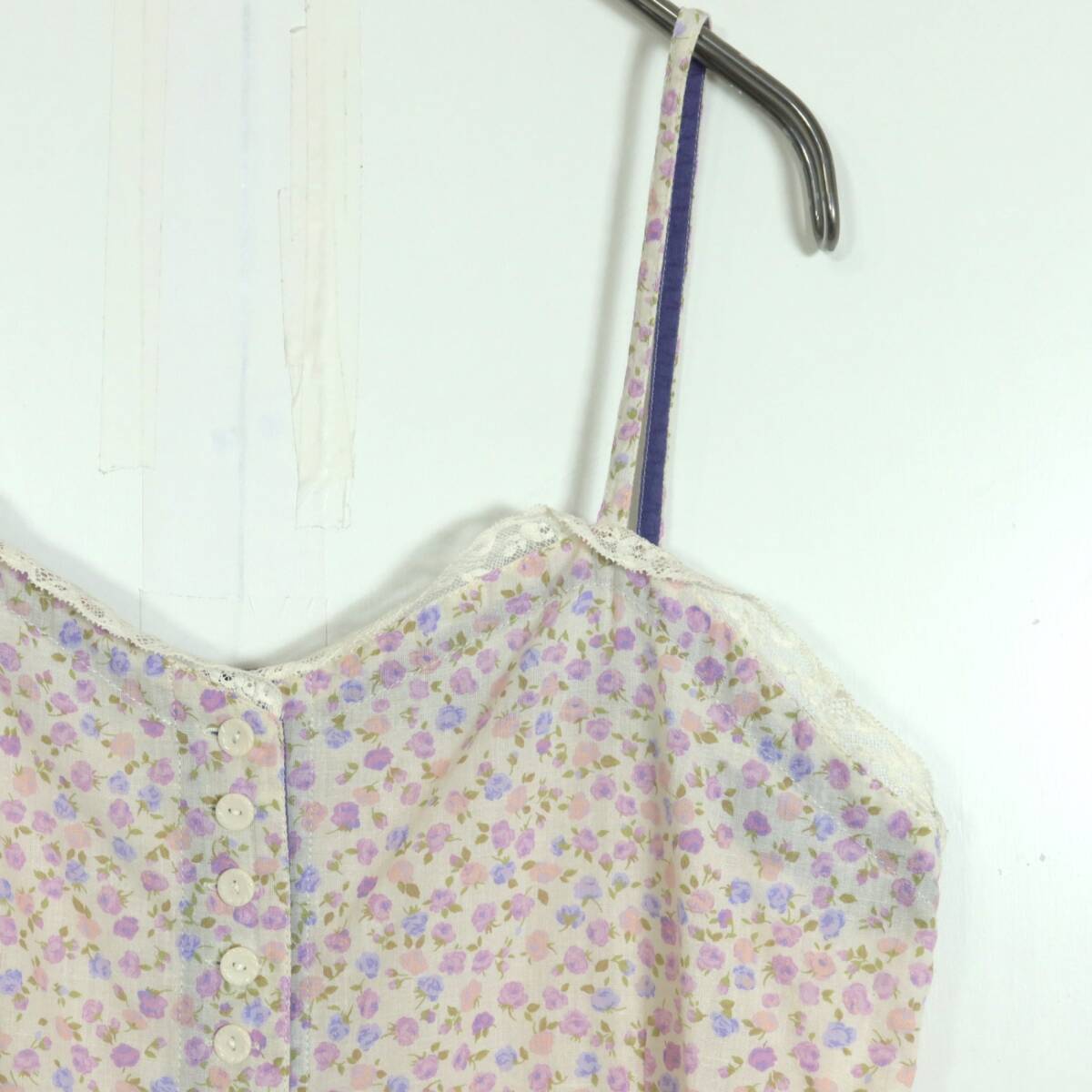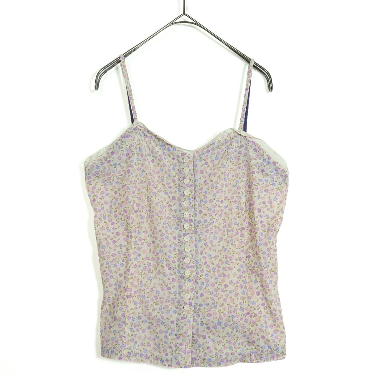 商品説明 | 【実寸約】バスト82総丈51(cm) 【サイズ表記】 なし(実寸をご参照ください) 【素材】綿100 【状態】普通の使用感のあるお品物 【デザイン】ホワイト色系 薄手/綿ローン生地/バラ柄 小さなバラ柄がかわいい♪前開き仕様のキャミソールです。 |