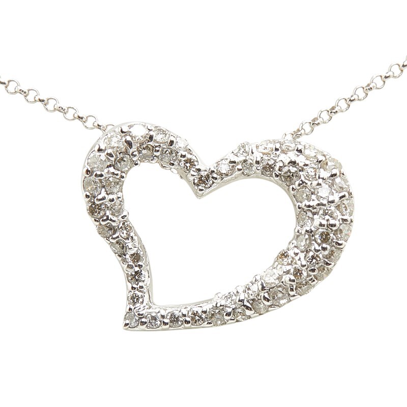 K18WG ホワイトゴールド ダイヤ0.53ct ハート モチーフ ペンダントネックレス レディース 中古