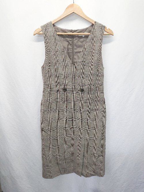 ◇ Θ NATURAL BEAUTY BASIC チェック 膝丈 ジャンパースカート サイズS グレー マルチ レディース E