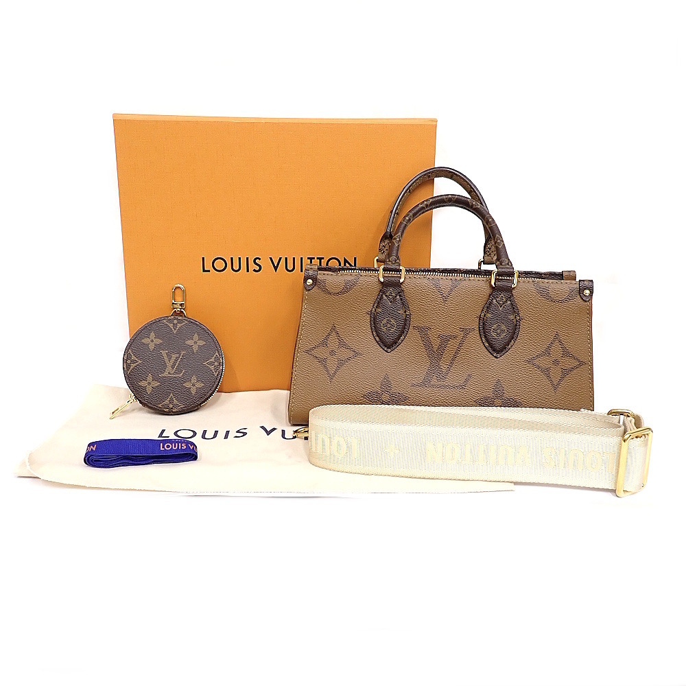 詳細・備考 | ヴィトンの高級バッグ「オンザゴーEW」が入荷致しました。片面にはジャイアント・モノグラム キャンバスを、もう片面にはモノグラム・リバースをあしらったスタイリッシュなデザインです。ショルダーストラップにコインケースを取り付けられるバッグです。 ■状態としましては、金具に若干小傷・黒ずみがございます。内側は若干使用感がございますが、目立った傷や汚れは見られません。全体的に使用感の少ない美品になります。 ☆お使いのモニターによっては、写真と実物の色味が若干違う場合がございます。ご了承ください。 |