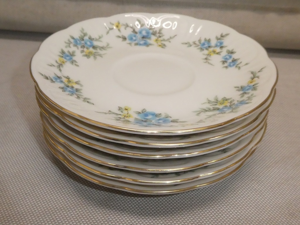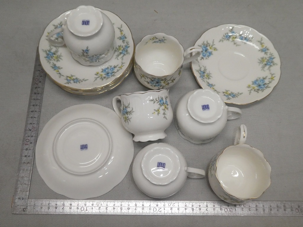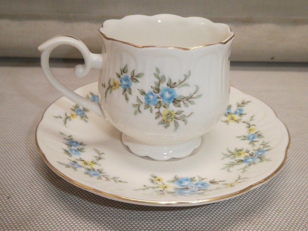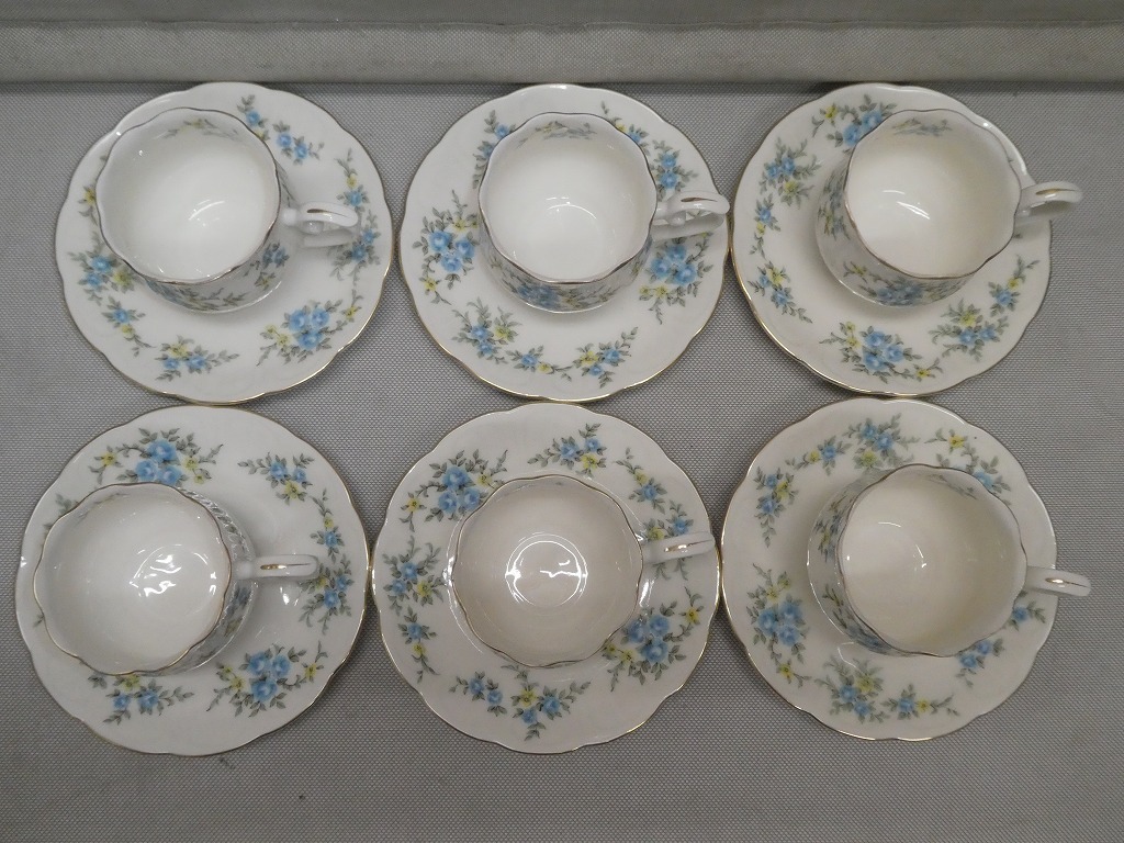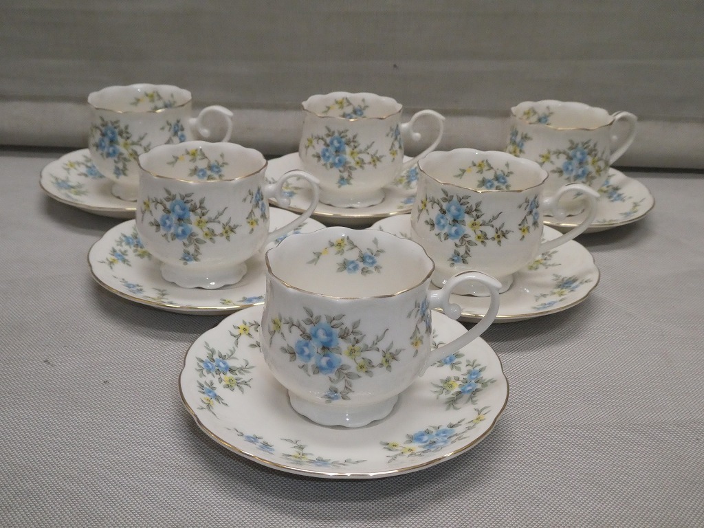 ●HOYA ホヤ 金縁 ブルーフラワー 青と黄 小花 花柄 カップ&ソーサー 6客セット フリル コーヒー 珈琲●