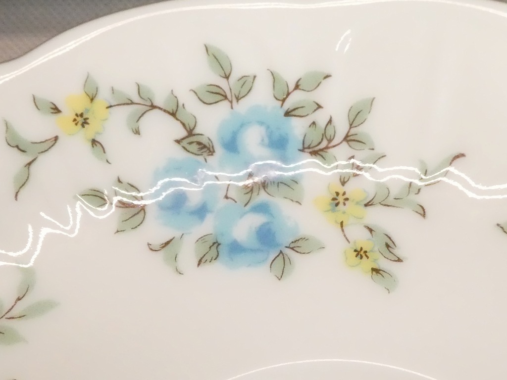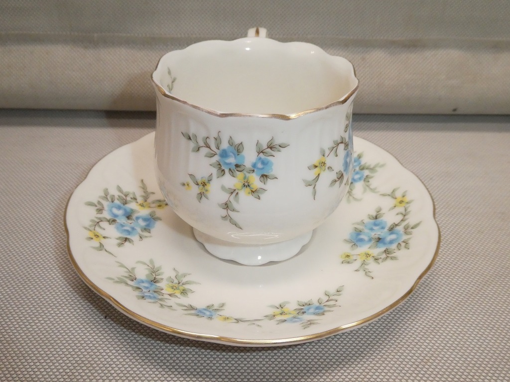 中古品の為、多少の薄汚れ、擦れ、金彩薄れ部分のある物もありますが、フリルの様なデザインでとっても可愛いカップ&ソーサーで、まだまだ使って頂ける素敵なお品です。その他製造過程による物や見落とし等ある場合はご了承ください。神経質な方はご遠慮下さい。