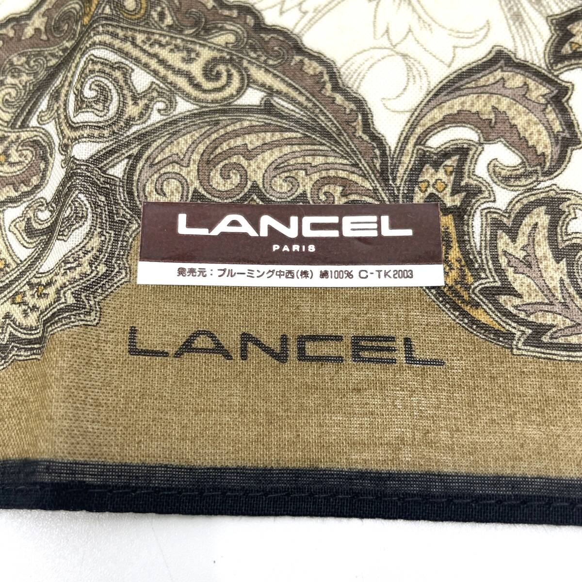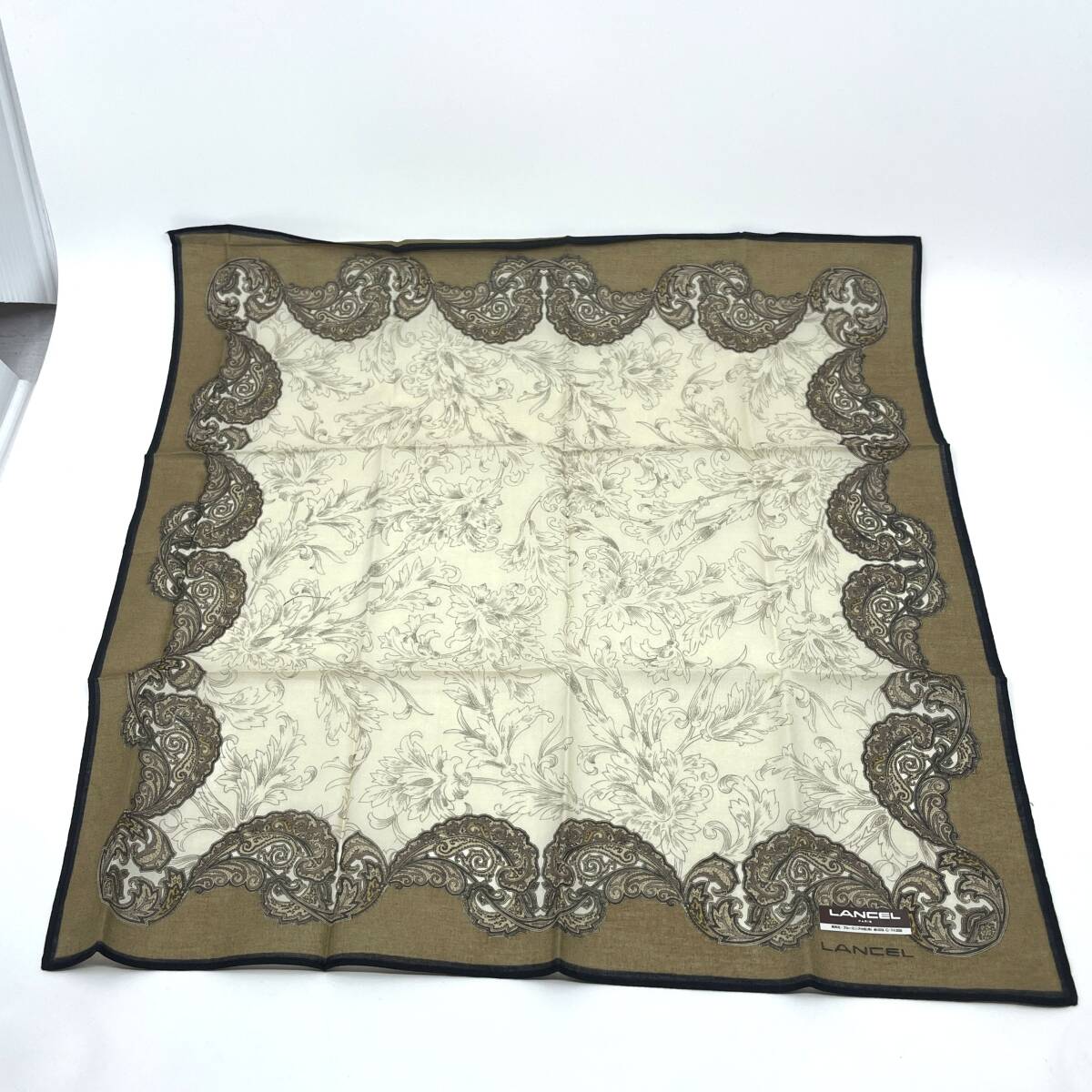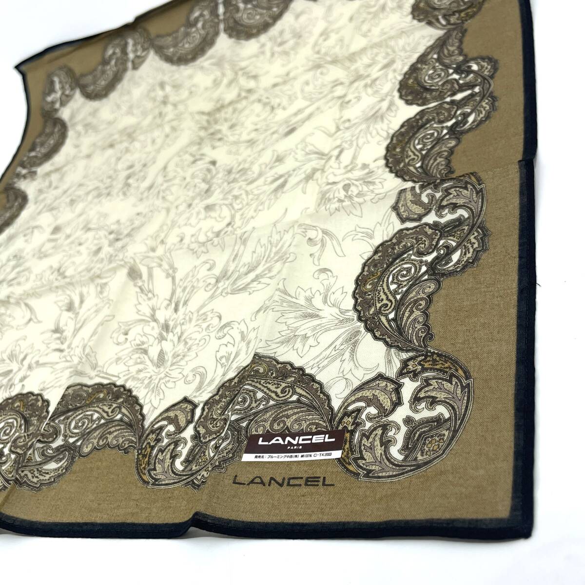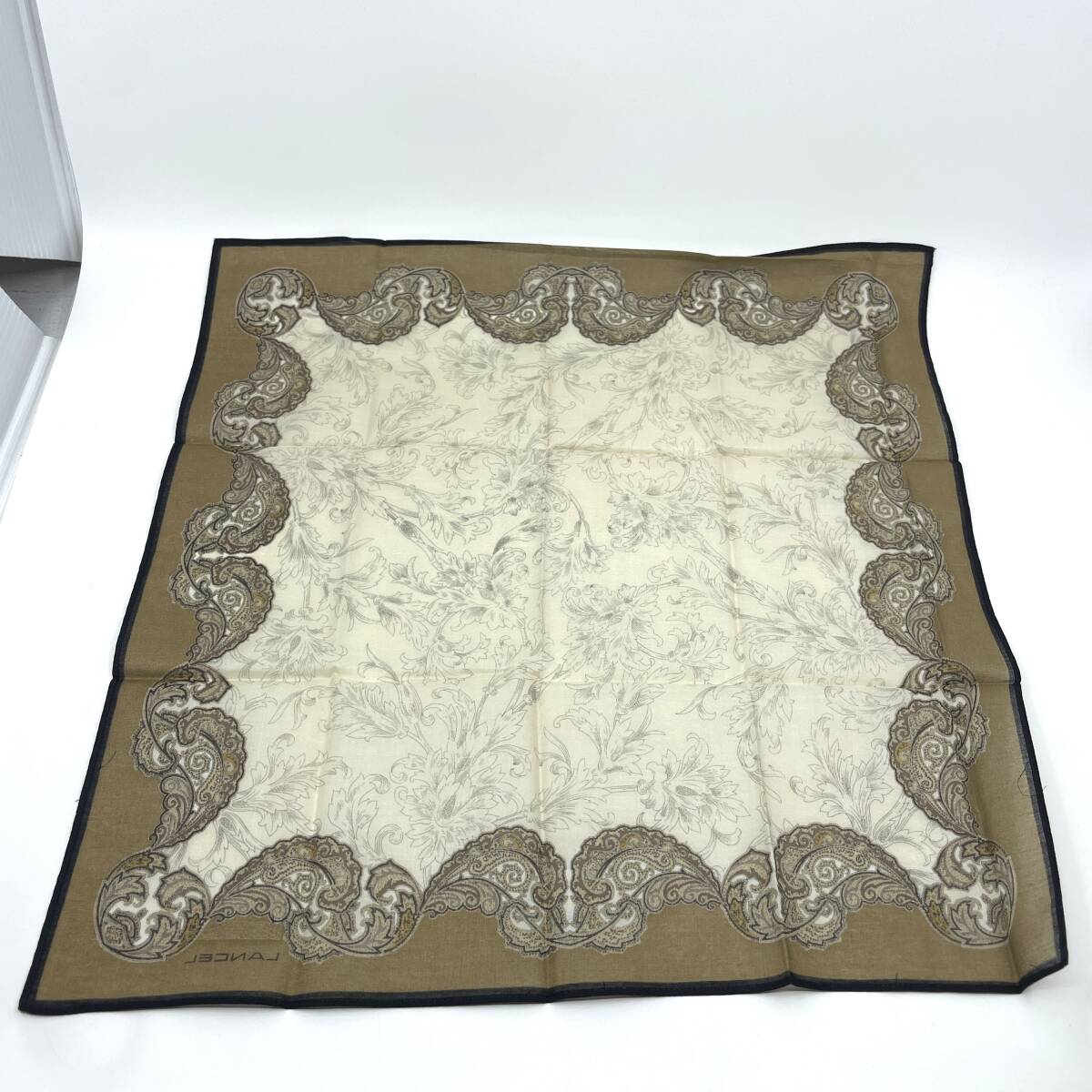 【シール付き未使用品】LANCEL ランセル ハンカチ バンダナ ブラウン系 植物 リーフ ペイズリー柄 綿 コットン100% ラグジュアリー