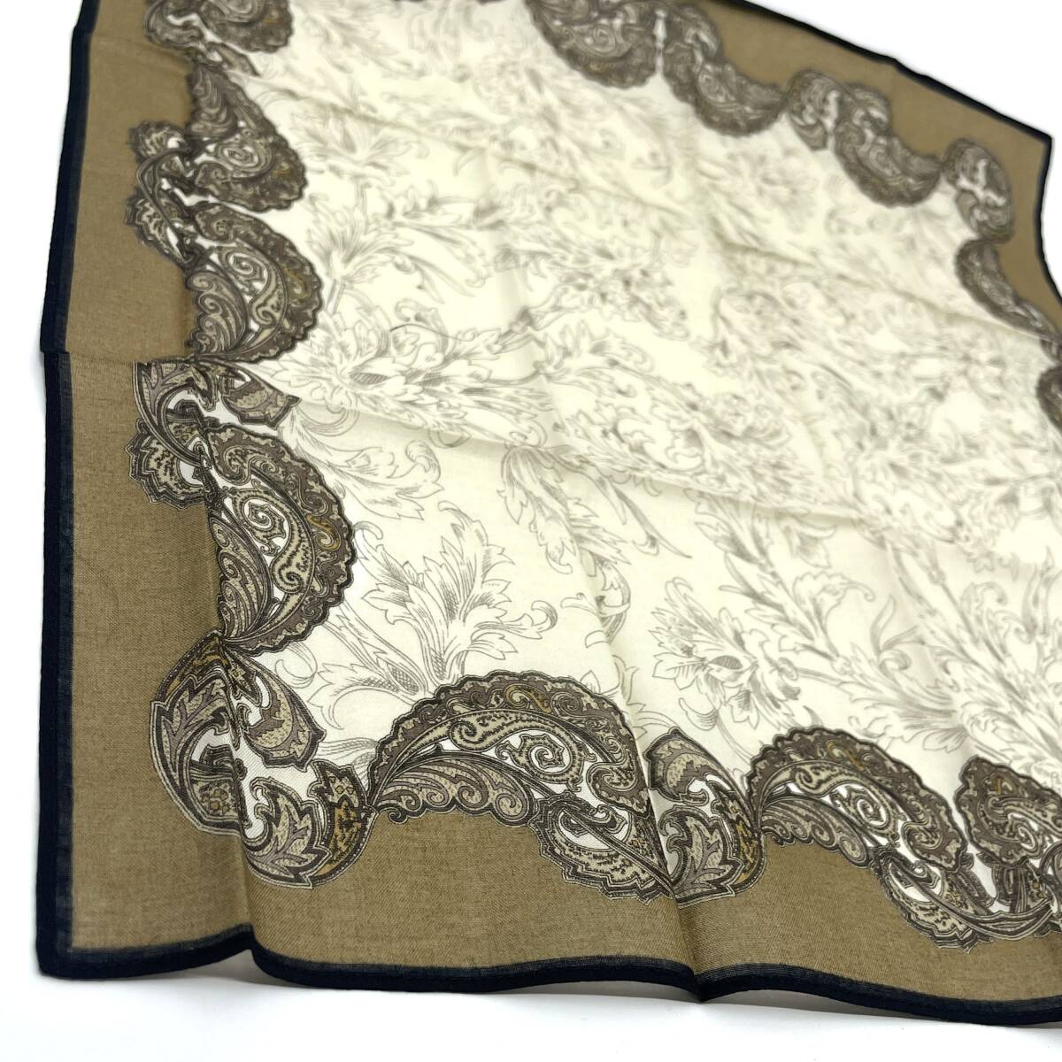 ハンカチ バンダナ ブラウン系 植物 リーフ  ペイズリー柄 綿 コットン100% エレガント ラグジュアリー