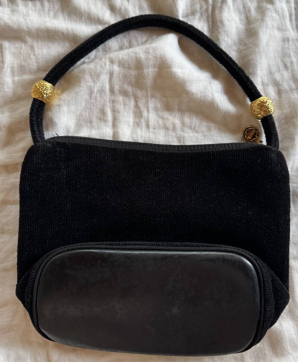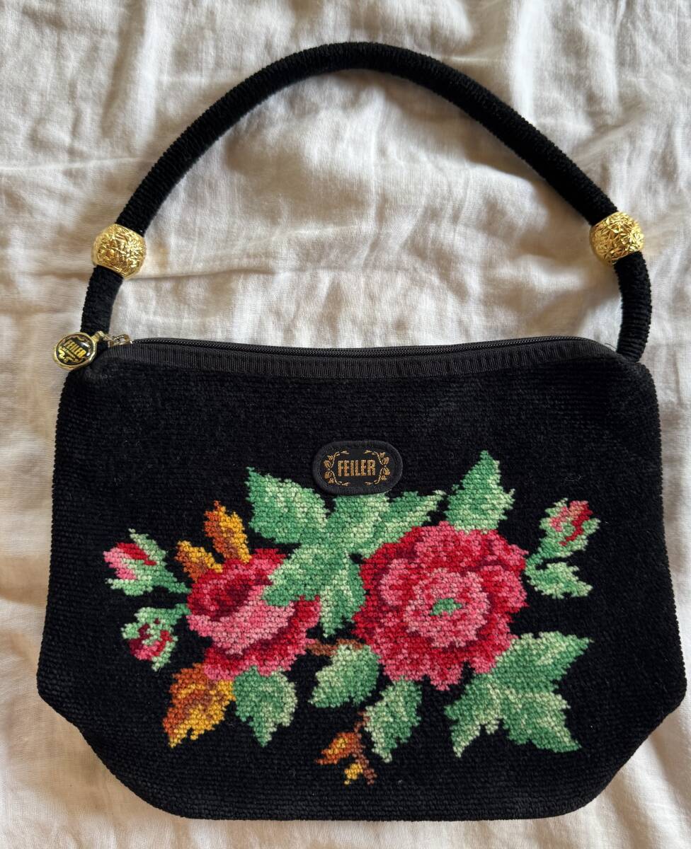 フェイラー ハンドバッグ シェニール織 黒 花柄 ポーチ