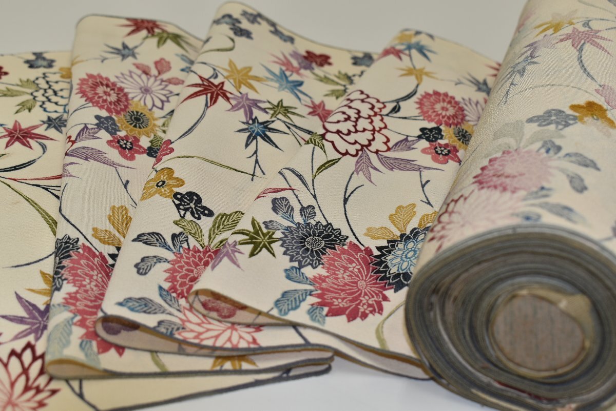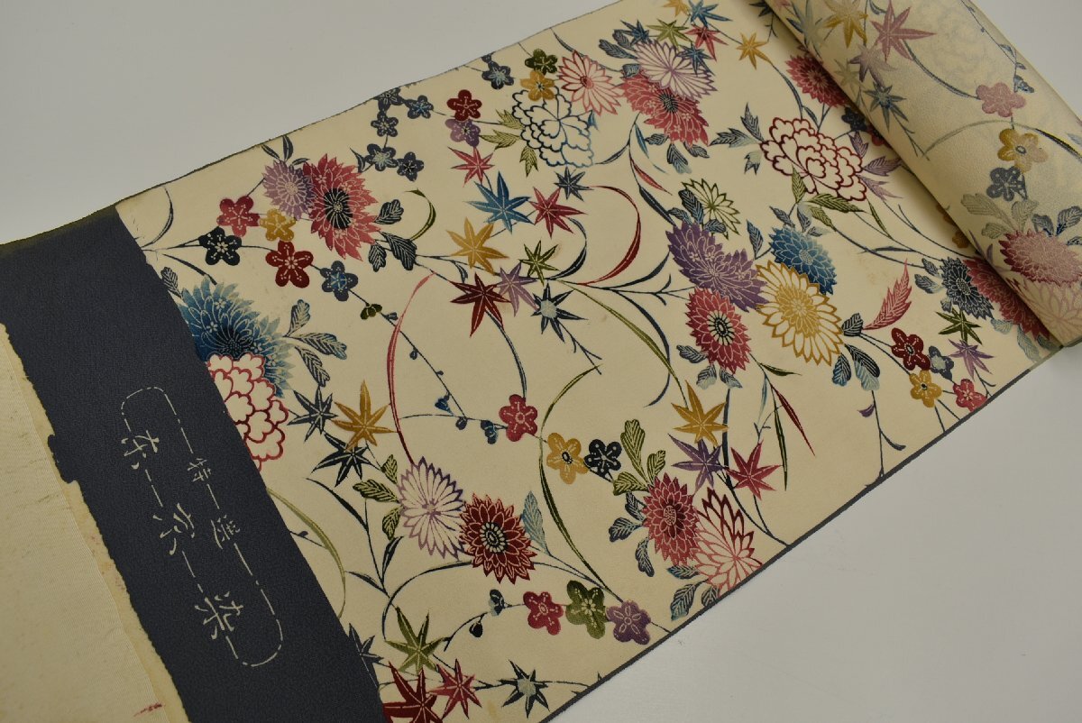 【ちどりや】未使用品 美品 正絹 丹後縮緬 小紋 本京染 友禅染め 着尺反物 多彩な草花文様 白 Y353