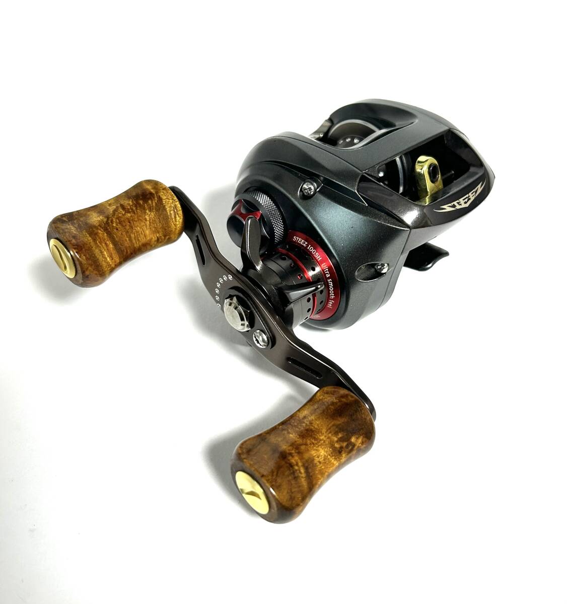 ☆ 人気商品入荷 限定特価 2個1セット シマノ・ダイワ対応  ウッド ハンドルノブ ゴールド ベアリング、シム付き ☆