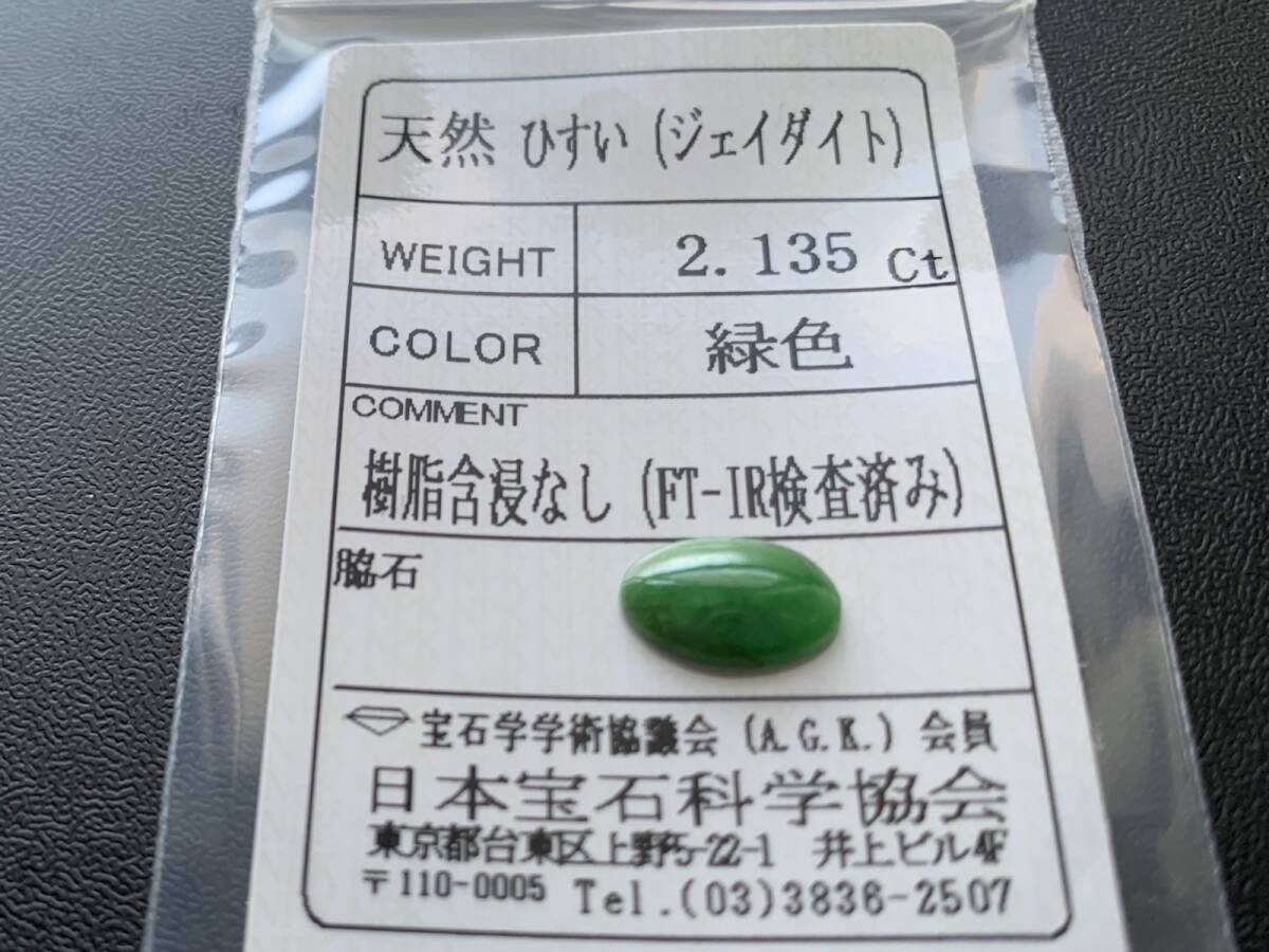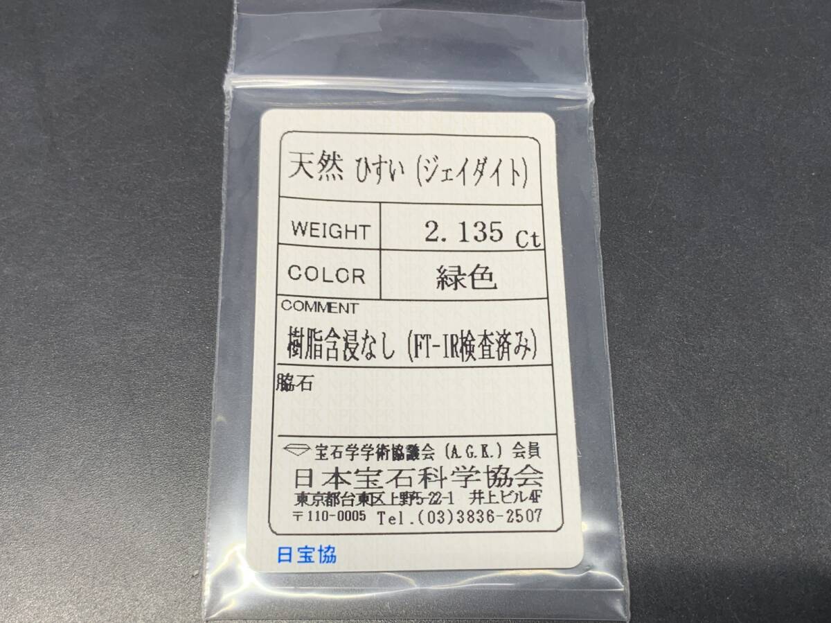 商品説明 | たくさんの商品の中からご覧頂きましてありがとうございます。 ★ご質問やオファー金額がある際はお気軽にコメントください。出来る限り頑張ります! ※数が多いのも大丈夫です。 ★ギフトラッピングを無料で承ります。 ご希望の場合は、ご購入時にお知らせ下さい。 ※準備にお時間を要する場合がありますのでご理解頂けると幸いです。 写真は、室内で撮影しております。 被写体となるものは撮影ライトの映りこみがありますのでご理解頂ければと思います。 商品状態は出来る限り画像で確認できるように撮影に努めておりますので、お写真でご確認いただければと思います。 ご不明な点は入札前にご質問宜しくお願いいたします。 ◎出品詳細 宝石ソーティング付き 天然 ヒスイ 翡翠 2.135ct 11.1×7.3×3.0 鑑定機関:日本宝石科学協会 |