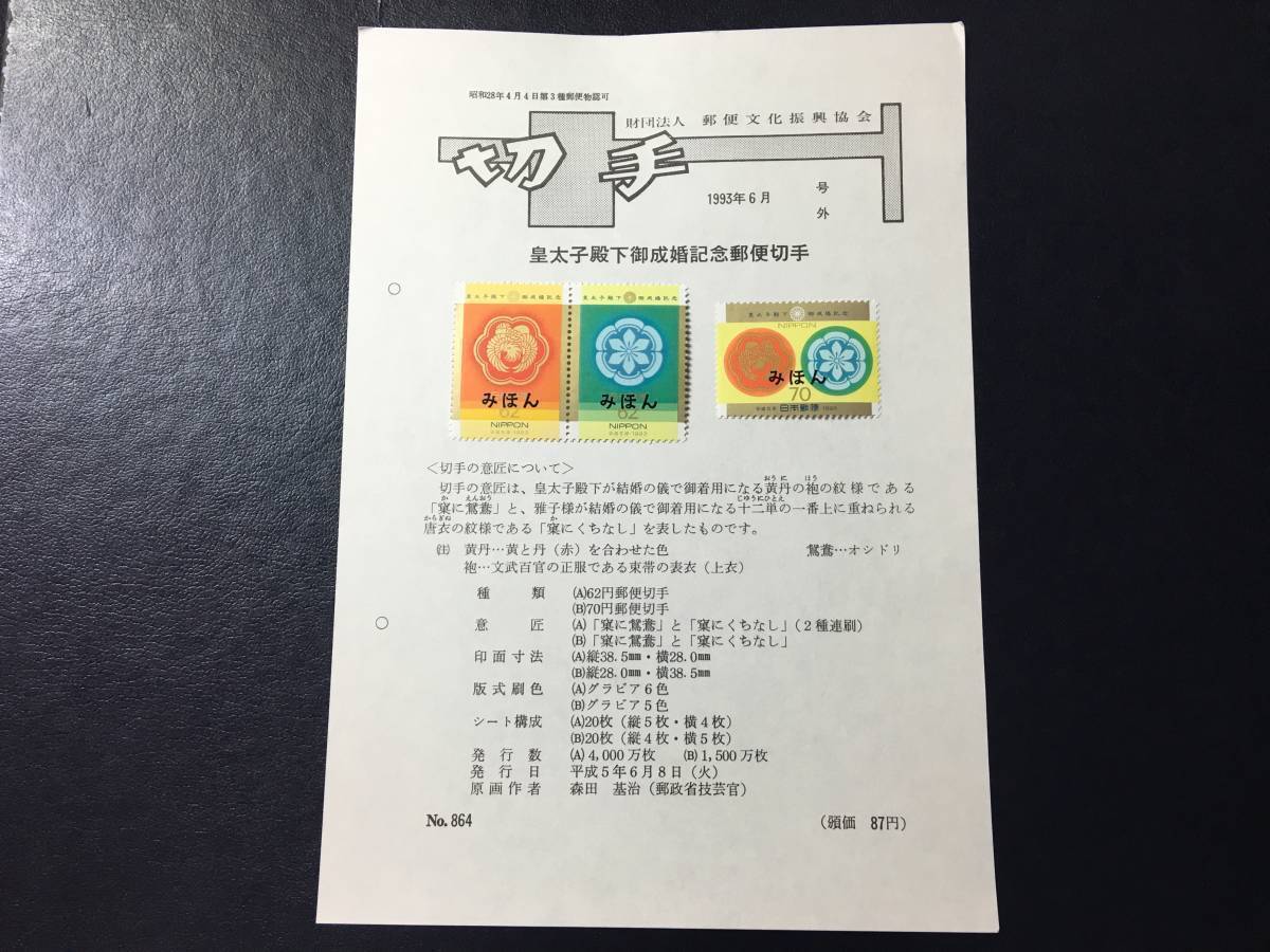 7107希少 みほん切手 見本切手 郵政省 1993年 皇太子徳仁成婚 記念切手 解説書 皇室切手 日本 鳥切手 動物切手 即決切手 FDC初日記念カバー