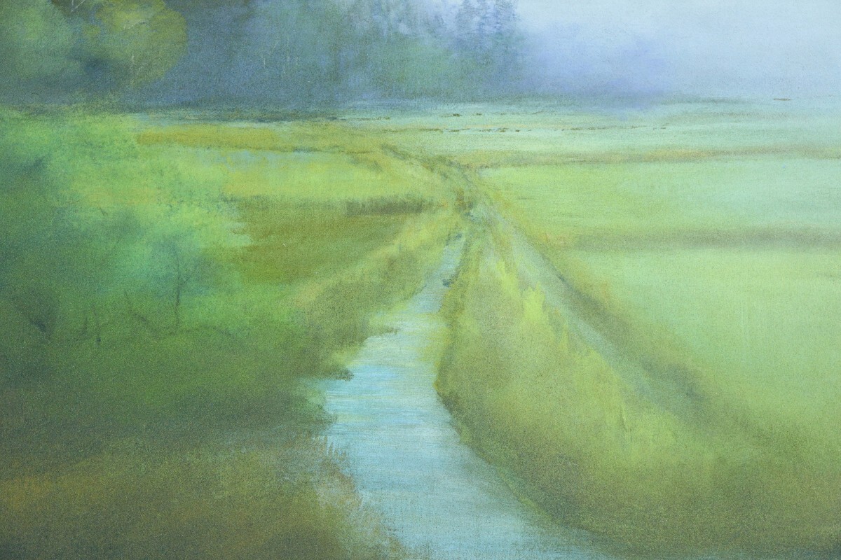 朝霧の透明感を巧みに表現し、