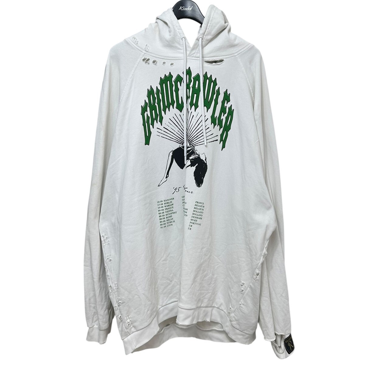 ラフシモンズの22SS Destroyed Oversized hoodie Grimrawler プリントオーバーサイズフーディー Mです。